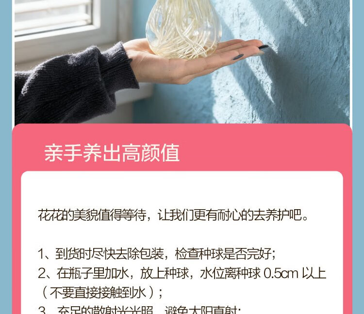 Waiting for the flowers to bloom, hyacinth hydroponic bulbs with bottle in random colors, 1 piece