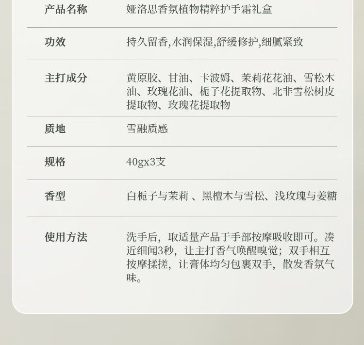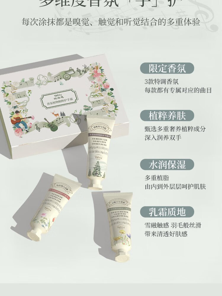 Yalos fragrance hand cream gift box Vaseline moisturizing and moisturizing autumn and winter anti-drying long-lasting fragrance gift for men and women/3 pieces