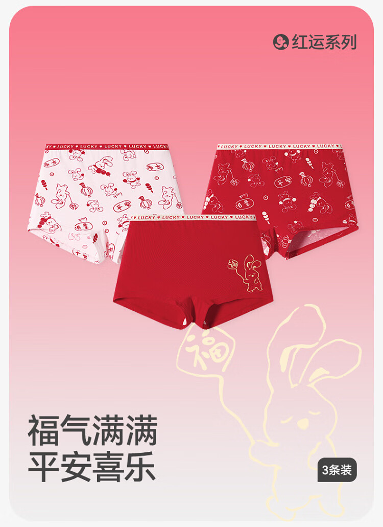 Long-term companion children's underwear girls' zodiac year big red boxer briefs for big children cartoon cute boxer shorts 405096Z