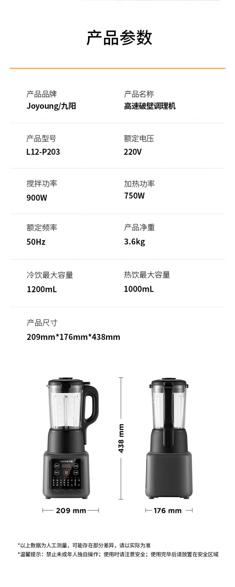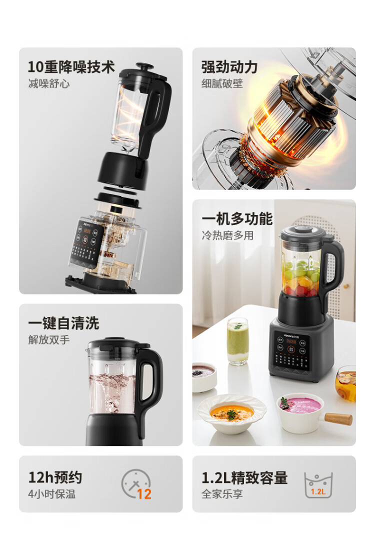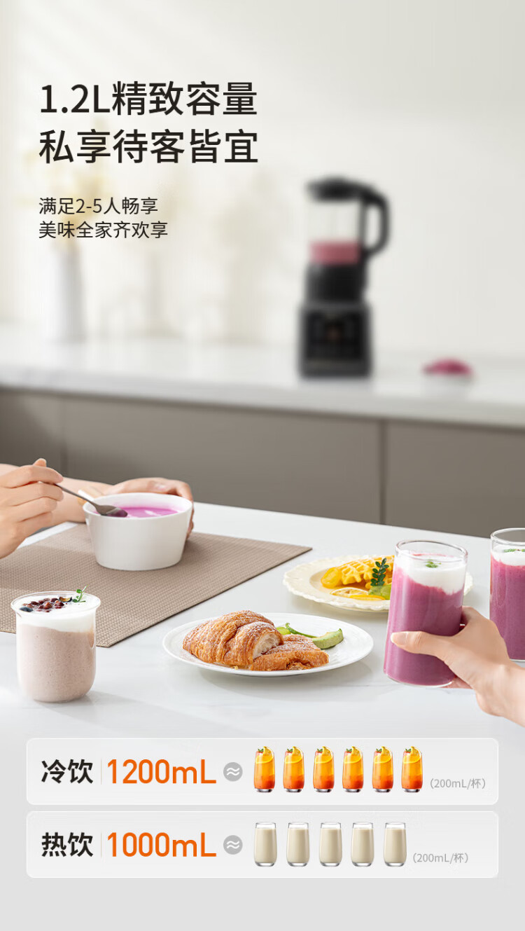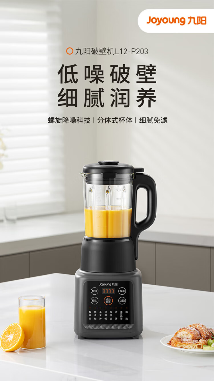 Joyoung's new household Qingyin fully automatic 1.2L multi-functional reservation soybean milk machine for 2-3 people juicer cooking food supplement machine grain breaking machine P203
