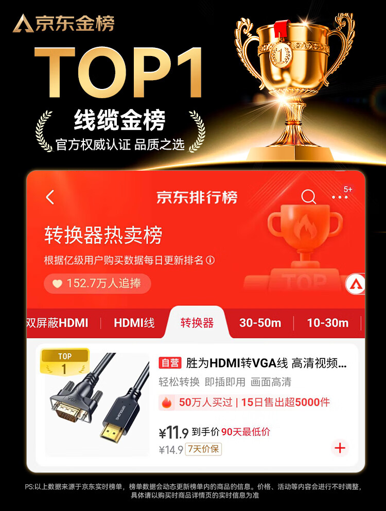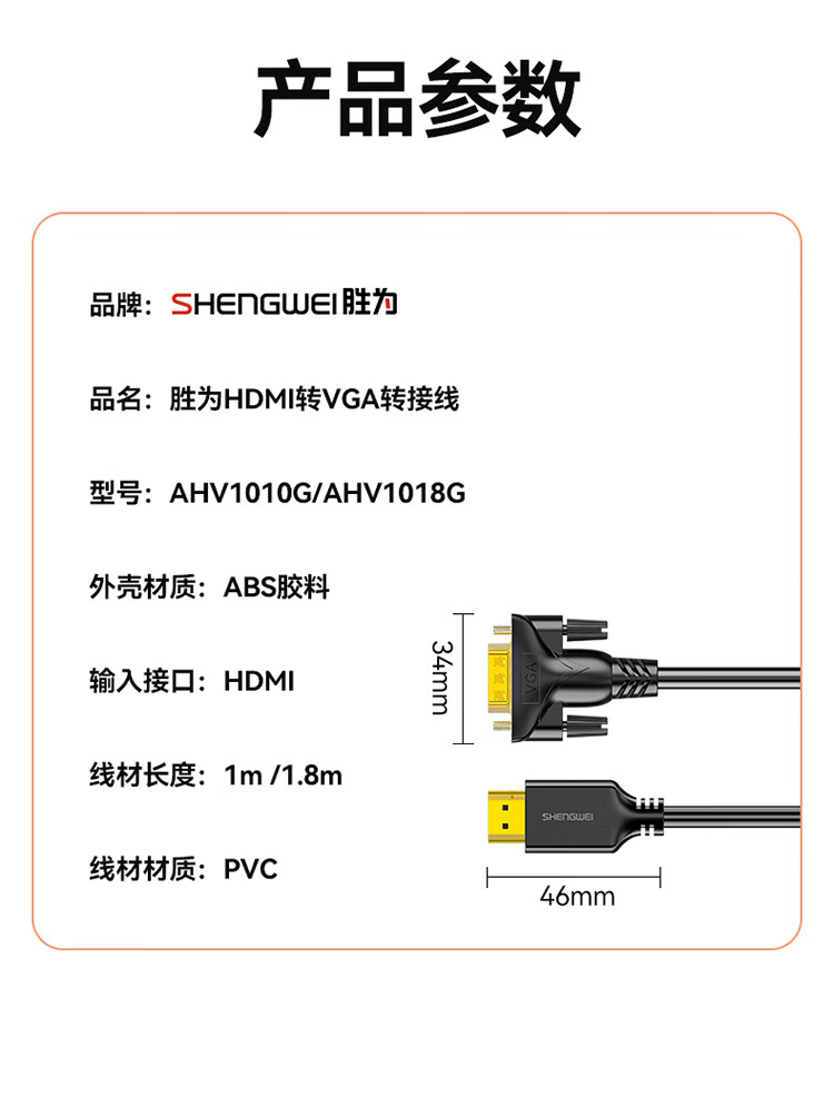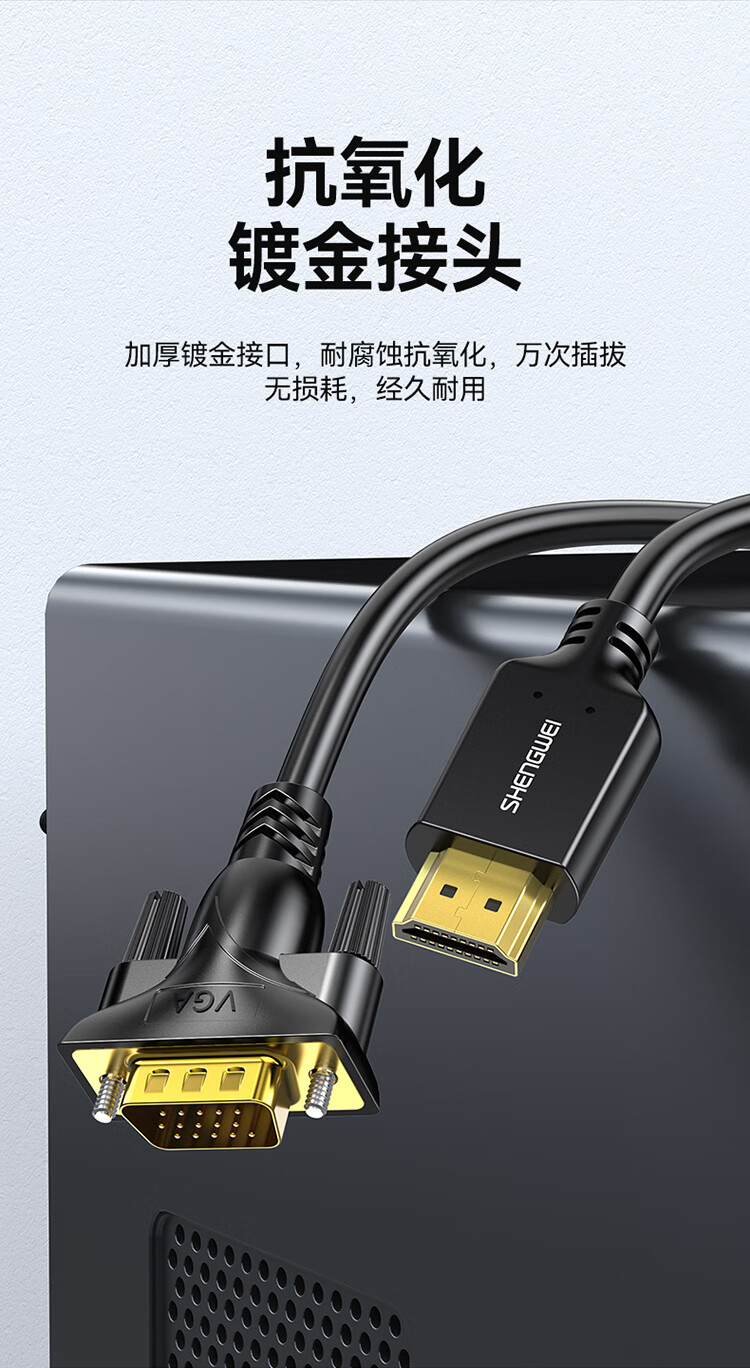 Shengwei HDMI to VGA cable HD video adapter cable projection converter cable computer laptop box connected to projector TV monitor 1.8 meters AHV1018G