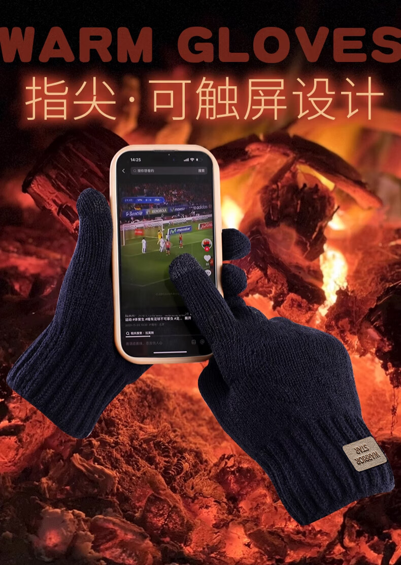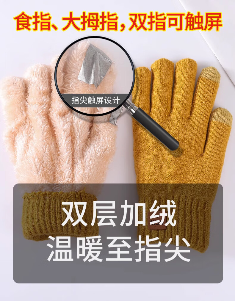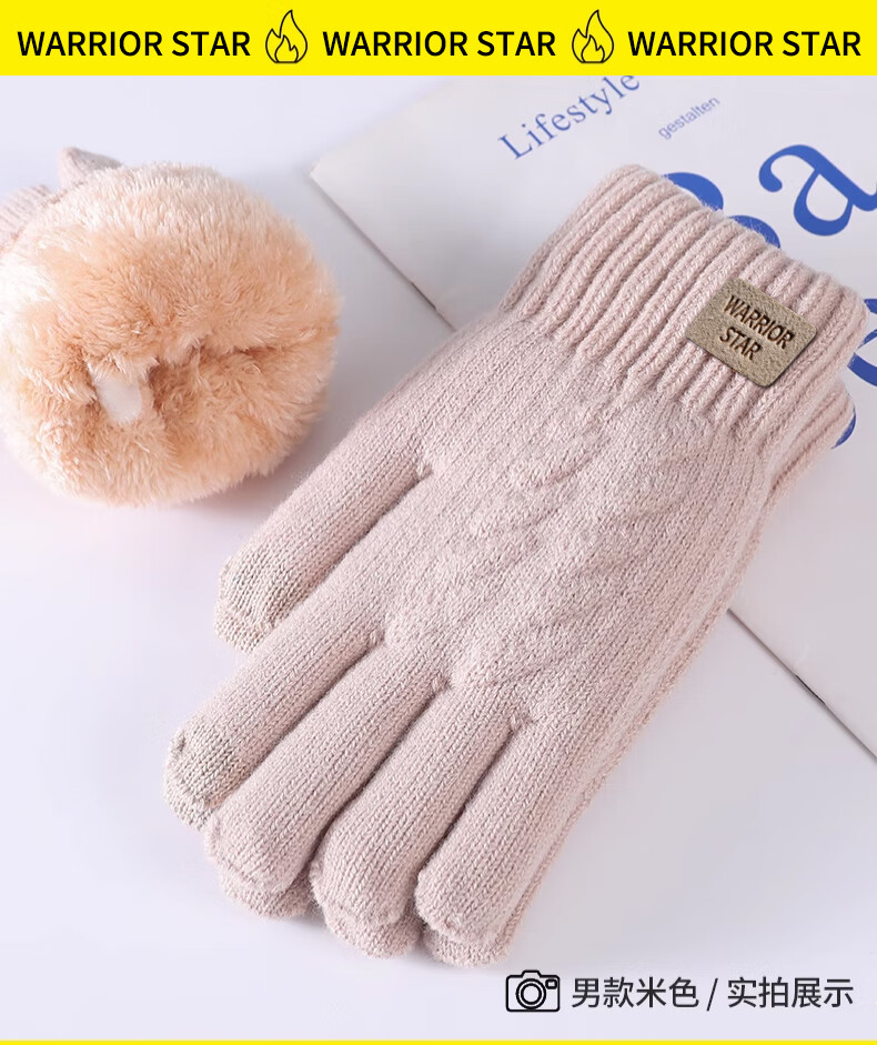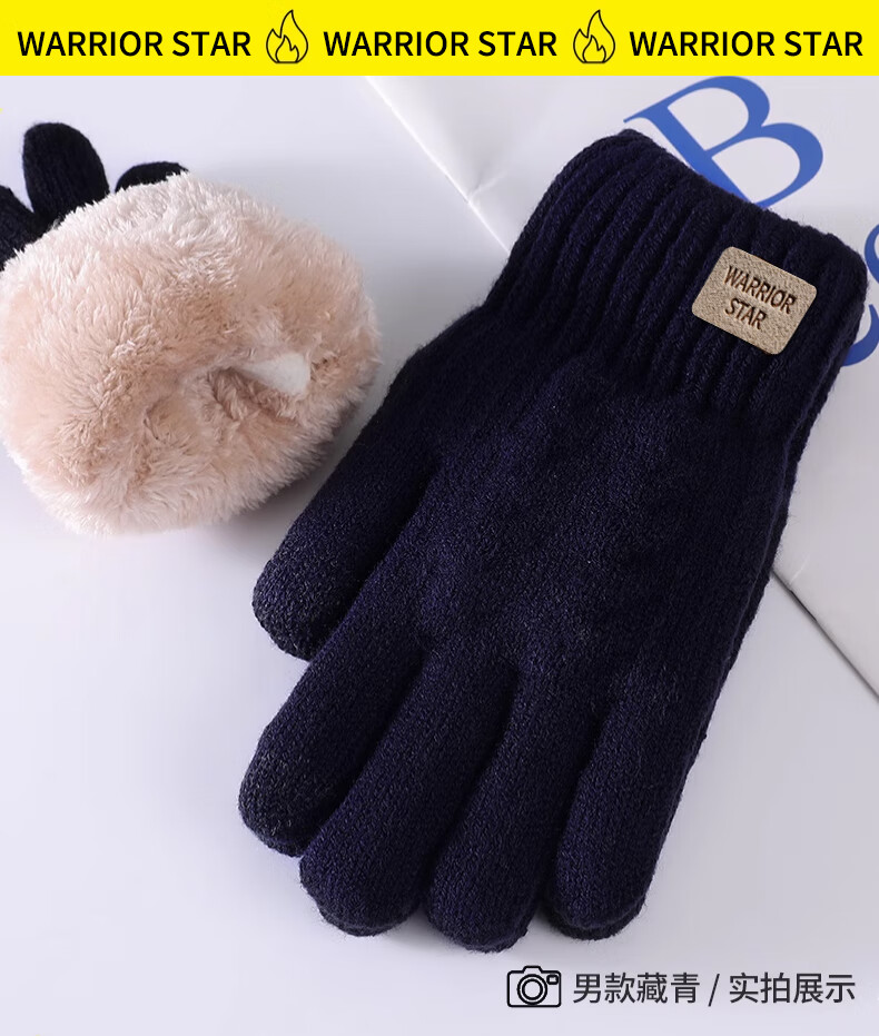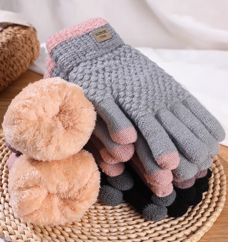 Pull-back woolen gloves for men and women in winter thickened velvet to keep warm and cold-proof touch screen outdoor cycling non-slip and wind-proof knitted gloves