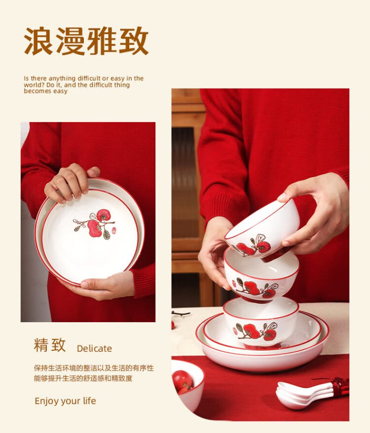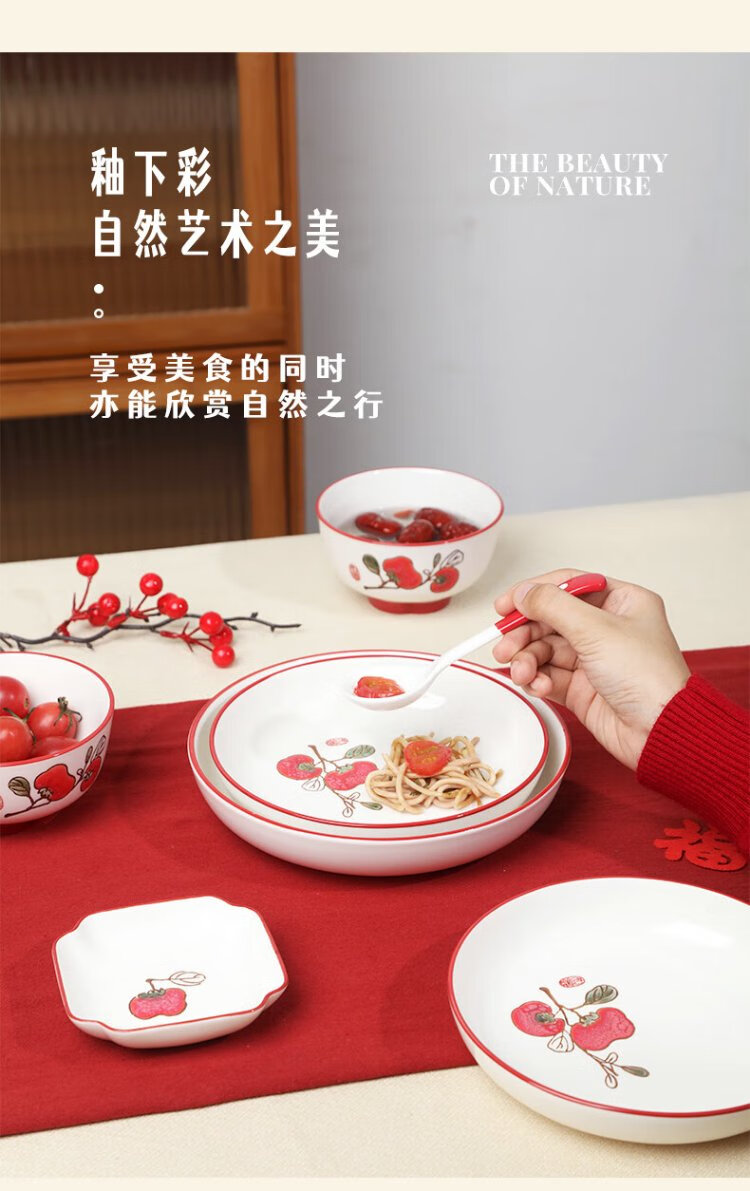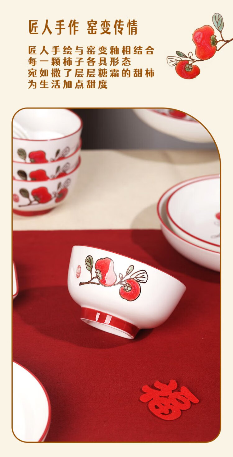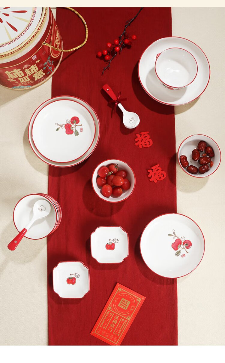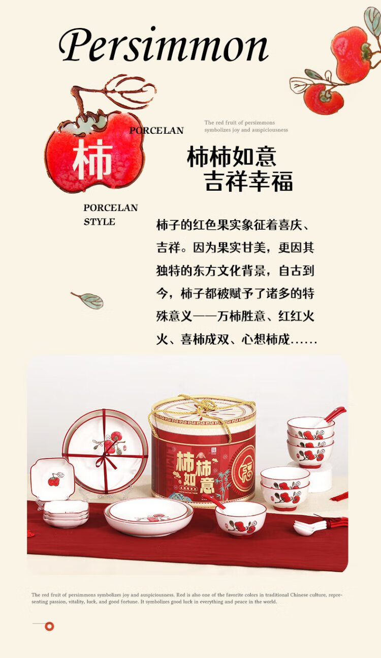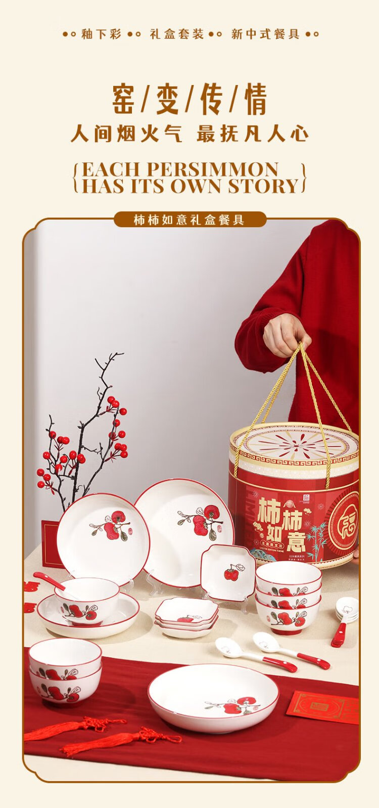 Shunxiang tableware set, housewarming gift, bowl and dish plate set, newlywed gift, warm home, fire persimmon, persimmon, wishful gift box