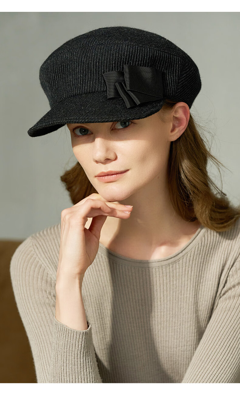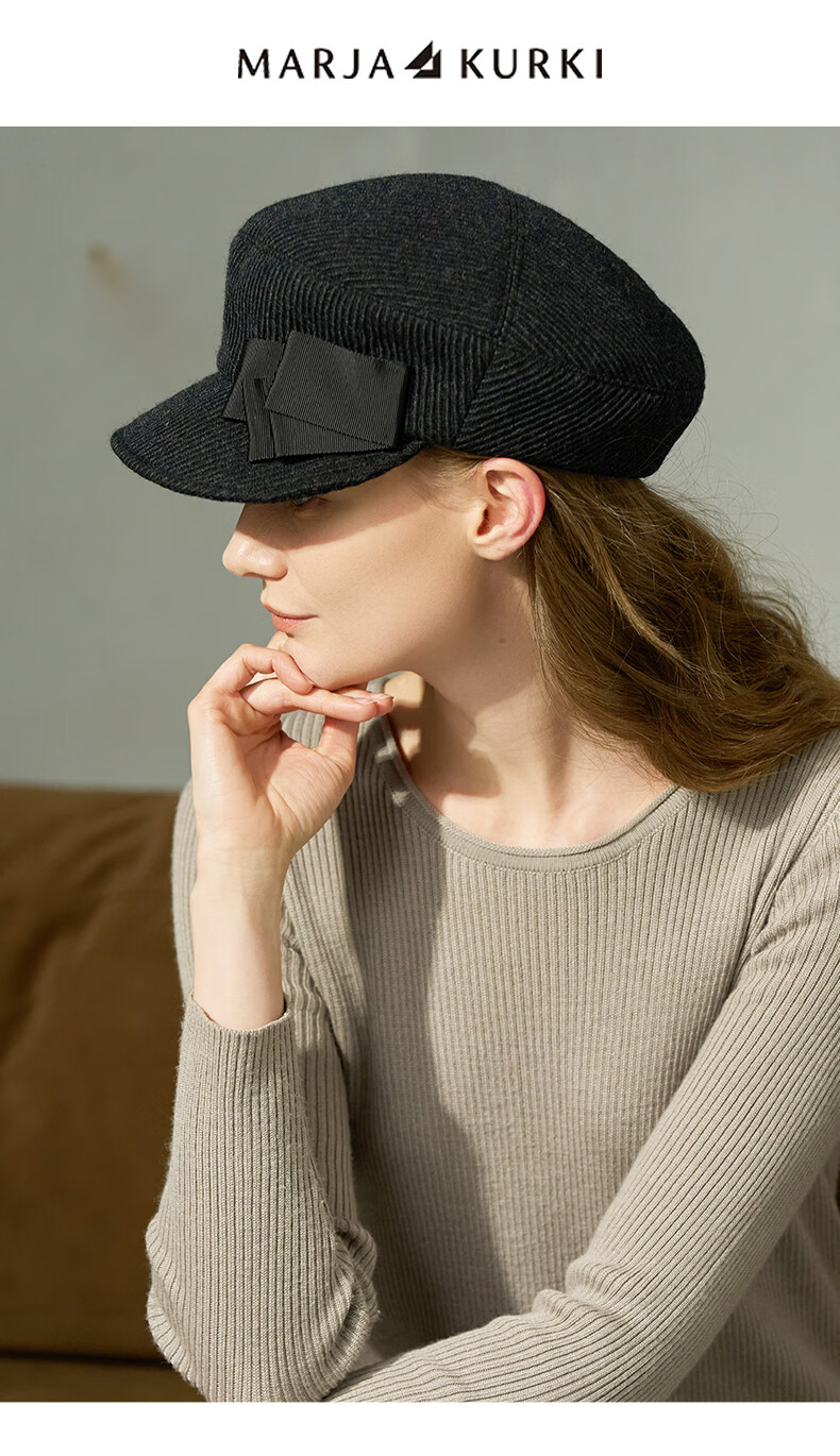 Maria Gucci all-match peaked cap with face, small top hat, warm wool hat, female modern girl 6QQ353199 black
