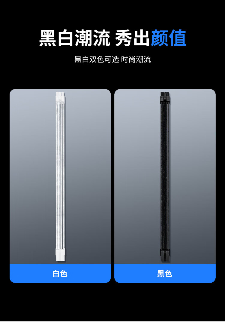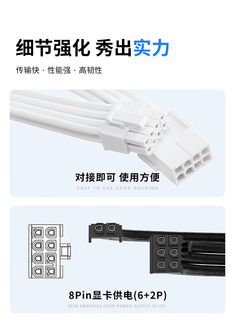 JEYI 40/50 series computer graphics card extension cable 8Pin power extension cable desktop computer nylon rope tinned copper 8P to 6+2P male and female extension cable 30 cm white