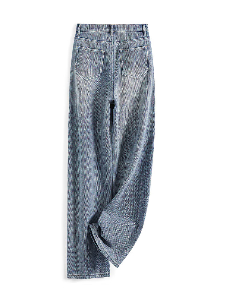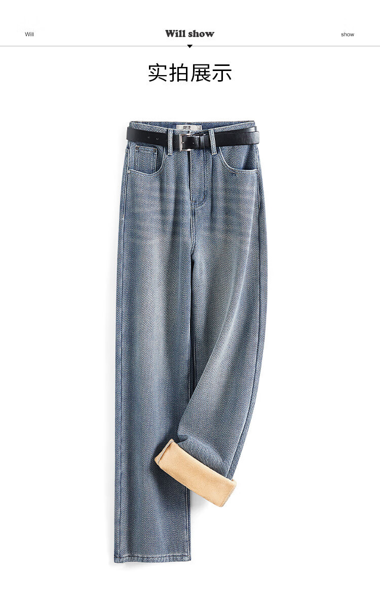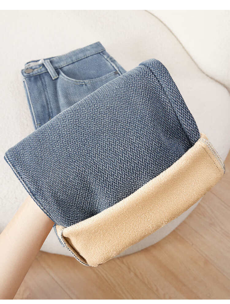 Shechi plus velvet jeans 2025 winter new women's fashion casual loose high-waisted slim straight pants