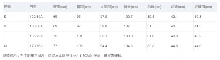 Outseam (cm) 99 cm 101.5 cm 104 cm 106.5 cm 109 cm