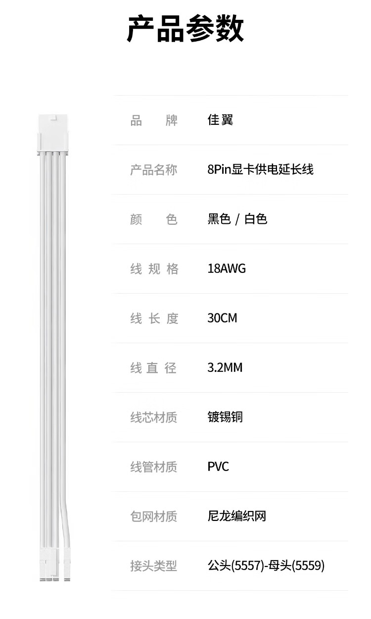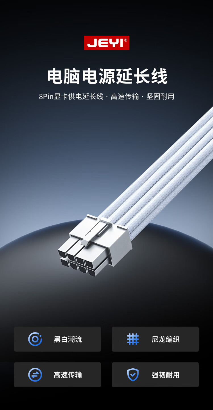 JEYI 40/50 series desktop computer graphics card extension cable 8Pin power extension cable power supply cable module cable 8P to 6+2P male and female extension cable 30 cm black