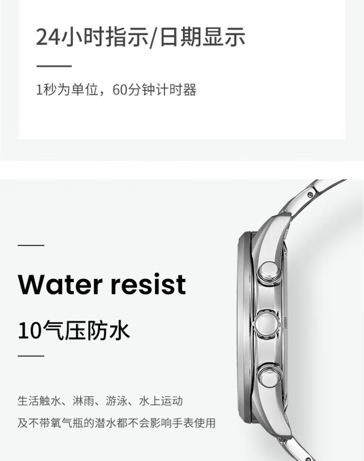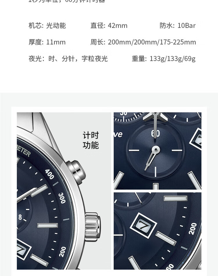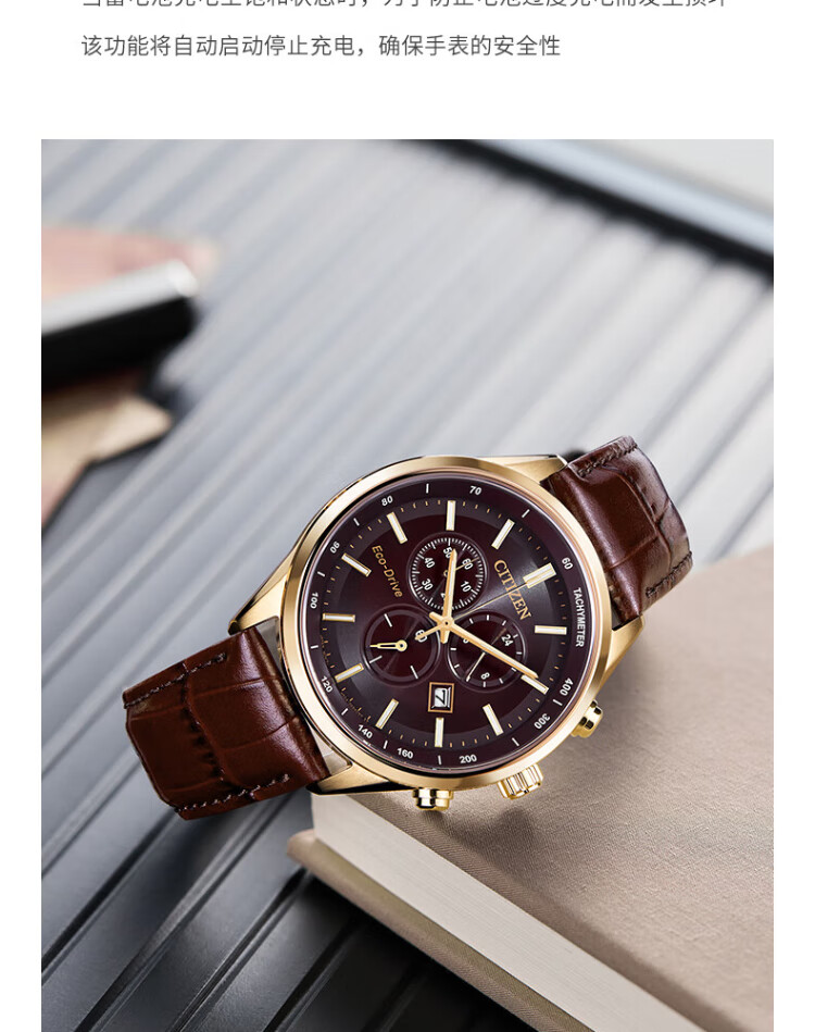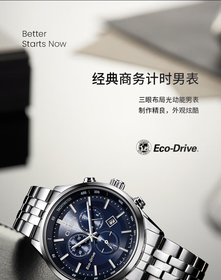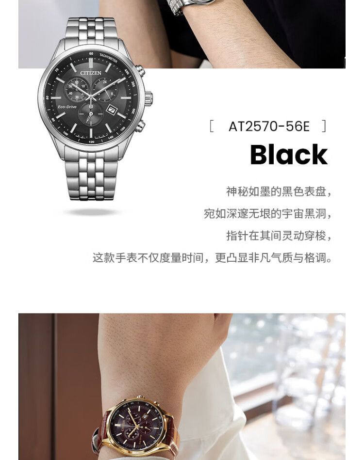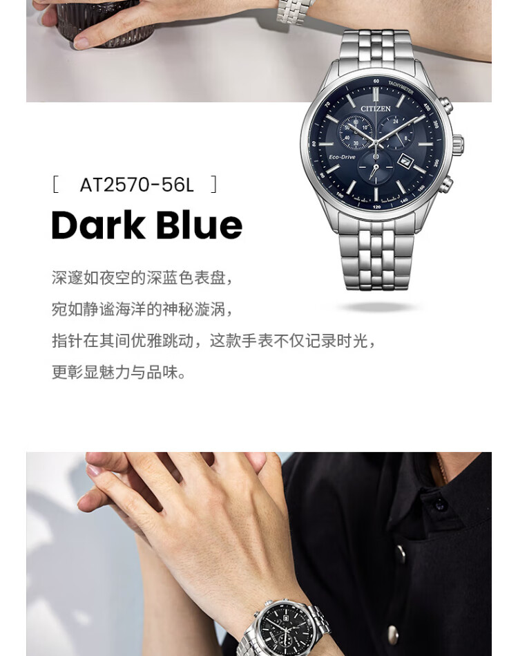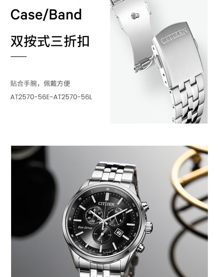CITIZEN watch men's Japanese and Korean watch light kinetic energy day display three-eye timing steel belt business New Year gift AT2570-56L