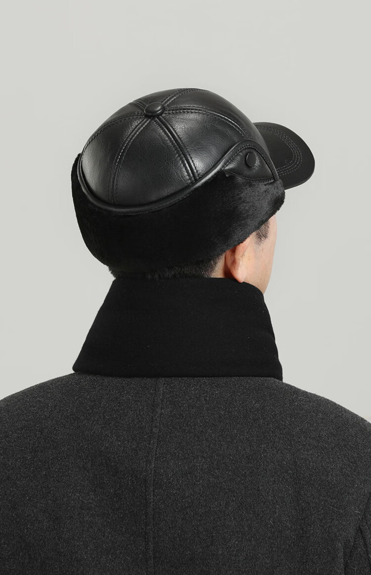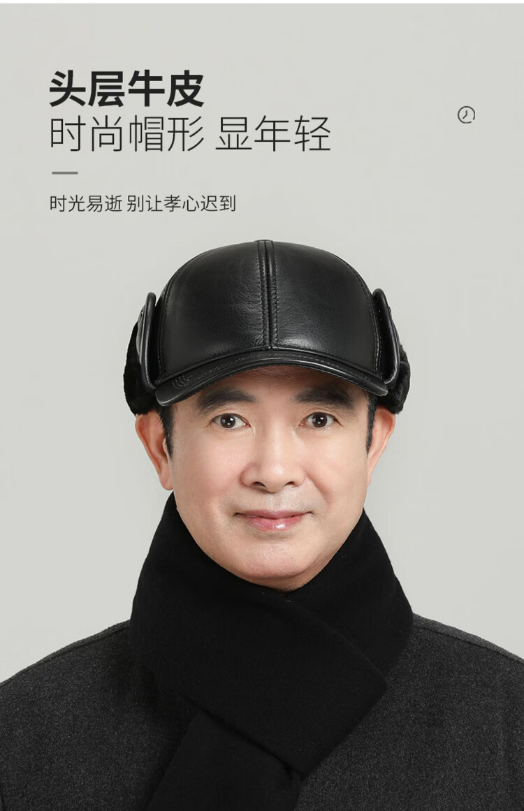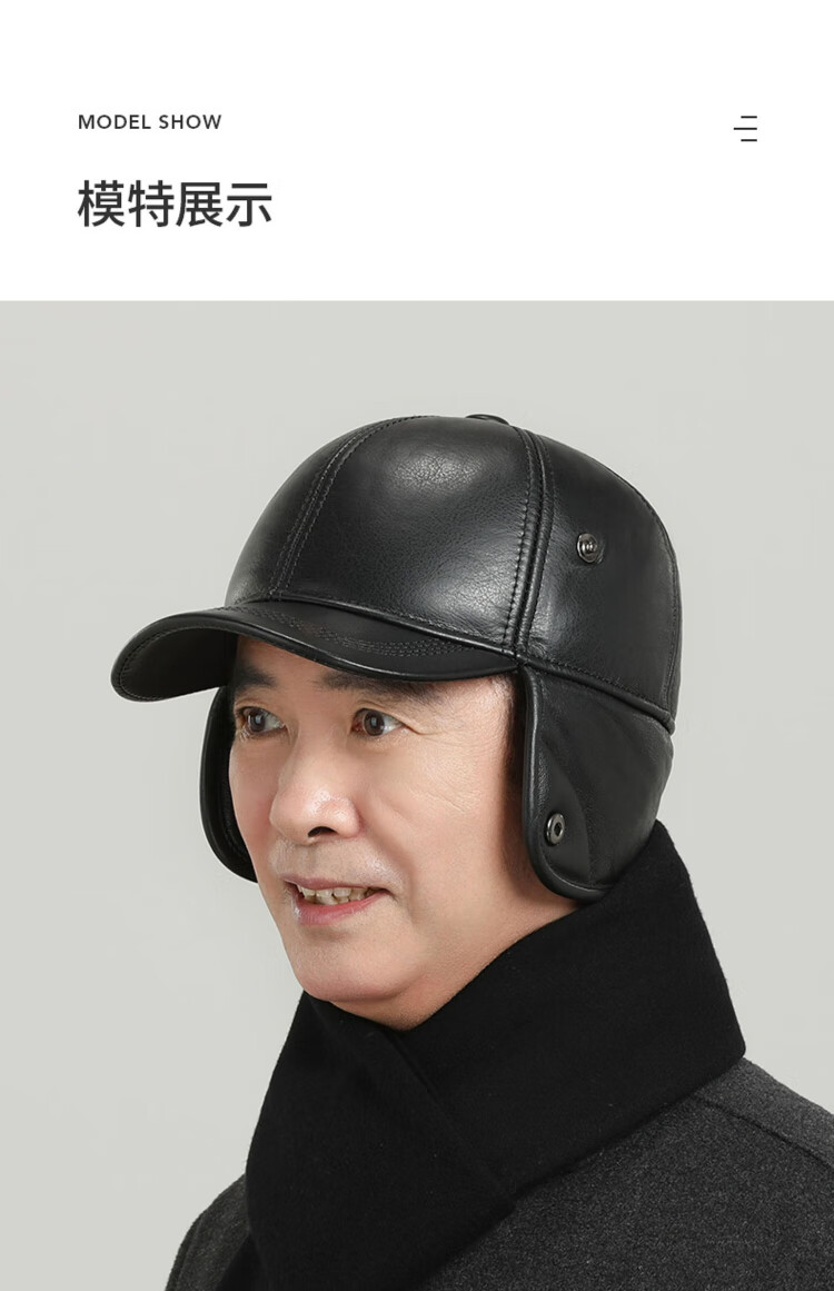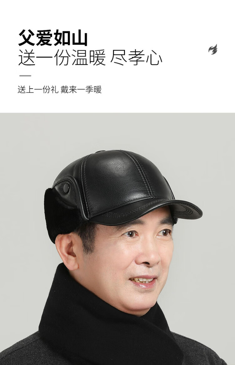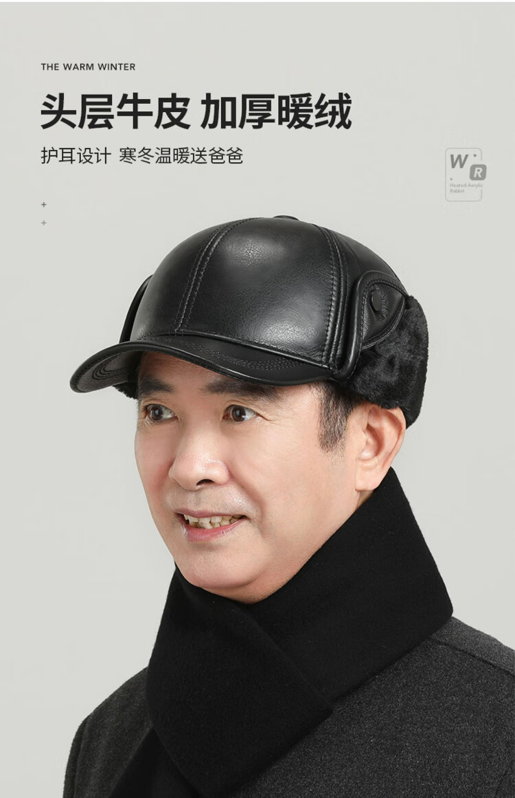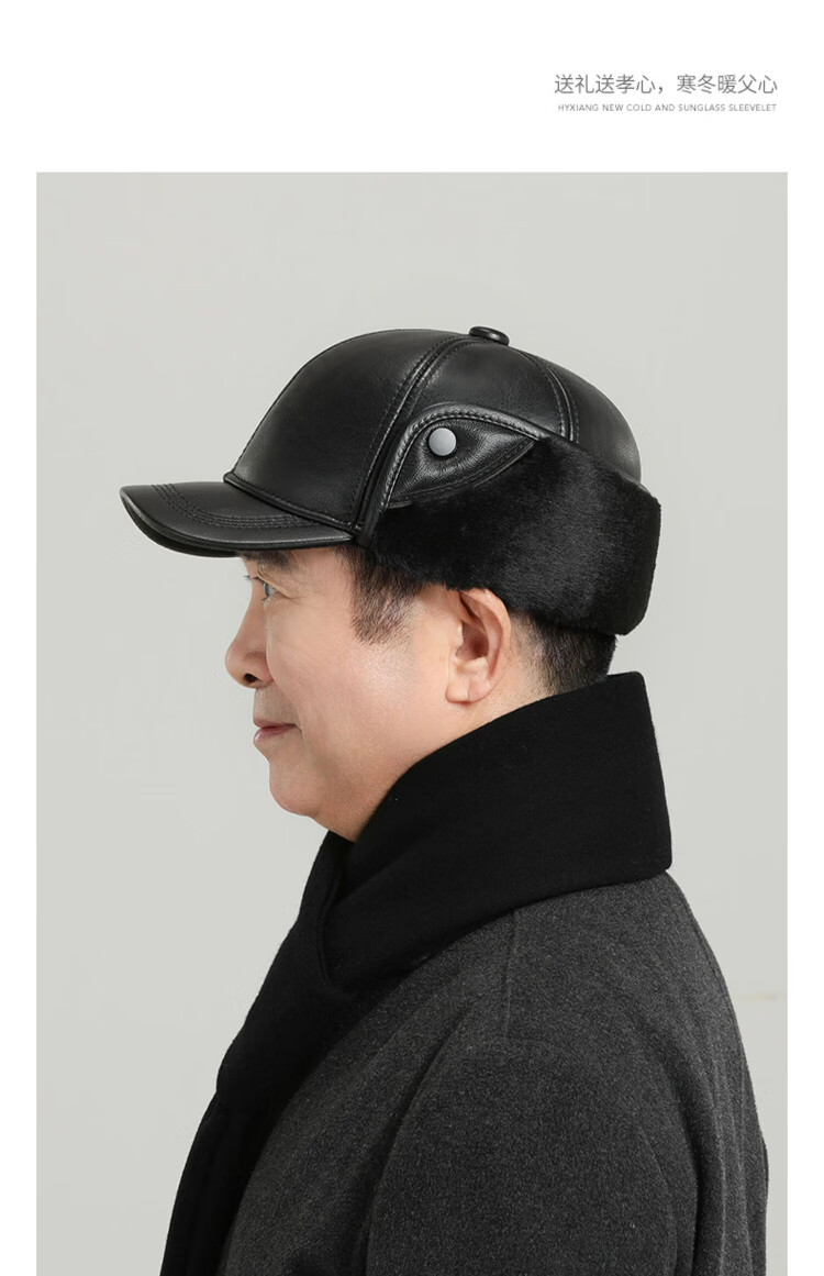 Hengyuanxiang leather hat men's winter plus velvet to keep warm and windproof old man dad grandpa winter peaked cap birthday gift
