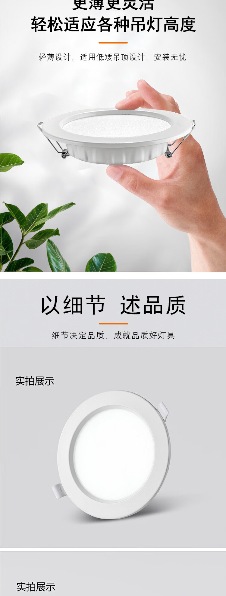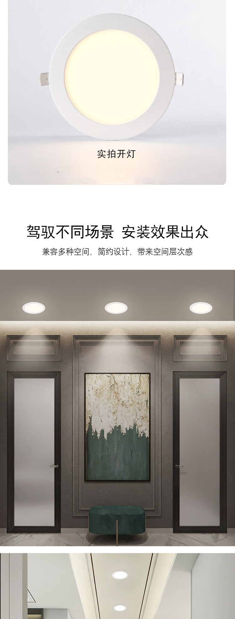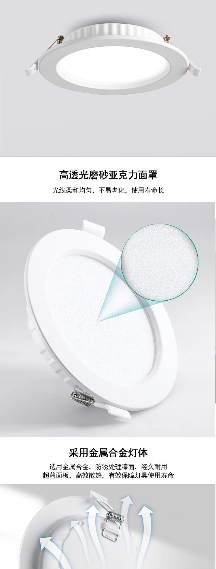 Beigong LED downlight embedded ultra-thin hole light living room ceiling aisle corridor tube spotlight hole light ceiling lamp Crystal series 8 inches 24W white light 6200K/opening 170-210mm