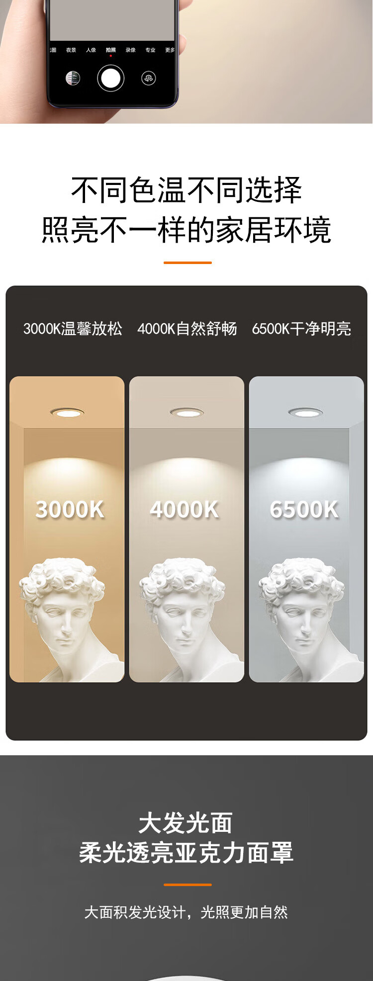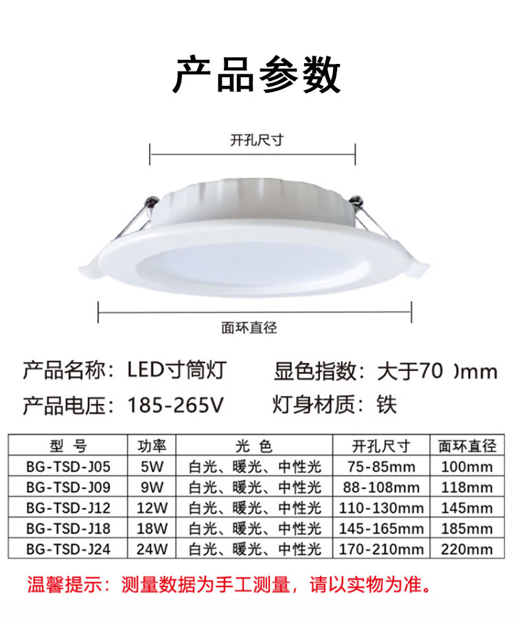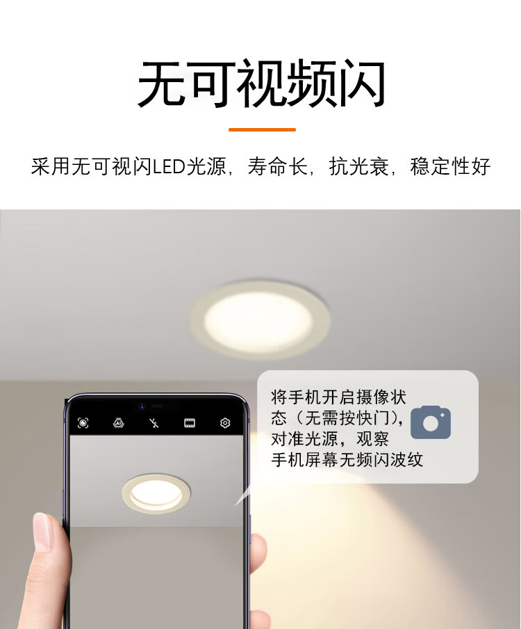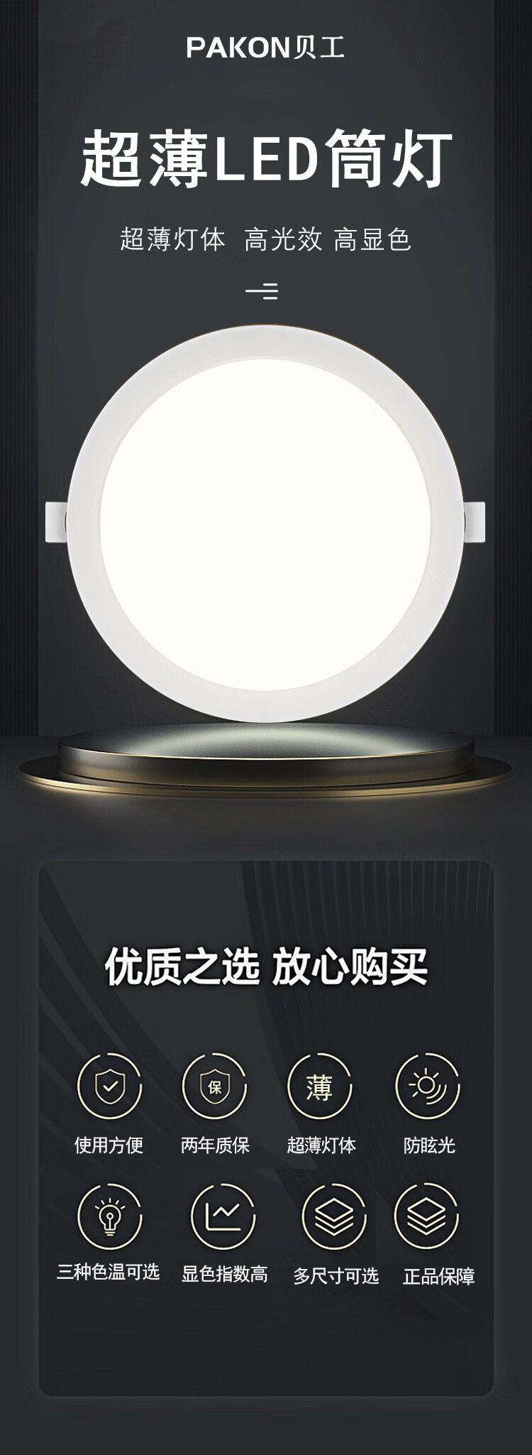 Beigong LED downlight embedded ultra-thin hole light living room ceiling aisle corridor tube spotlight hole light ceiling lamp Crystal series 8 inches 24W white light 6200K/opening 170-210mm