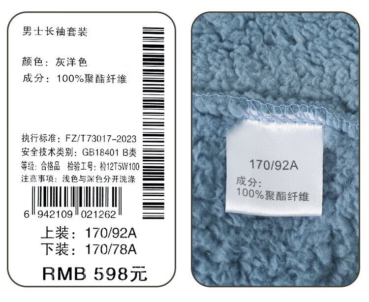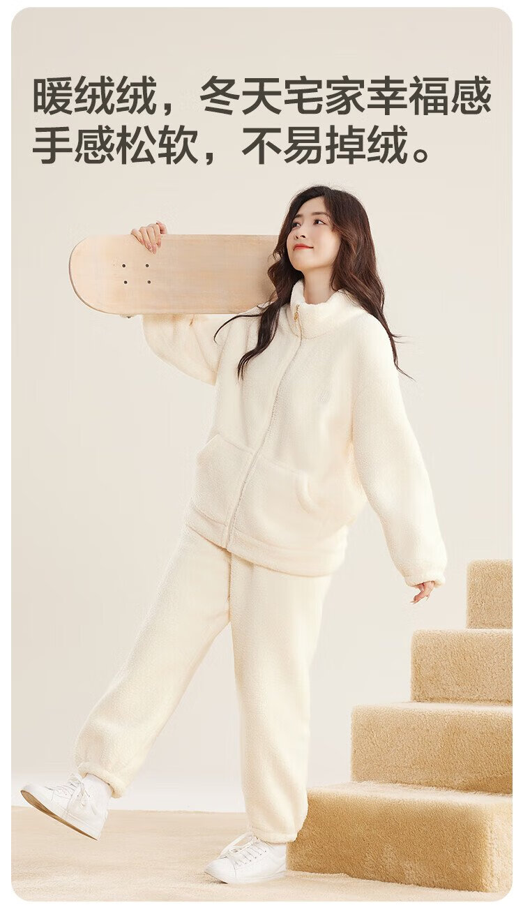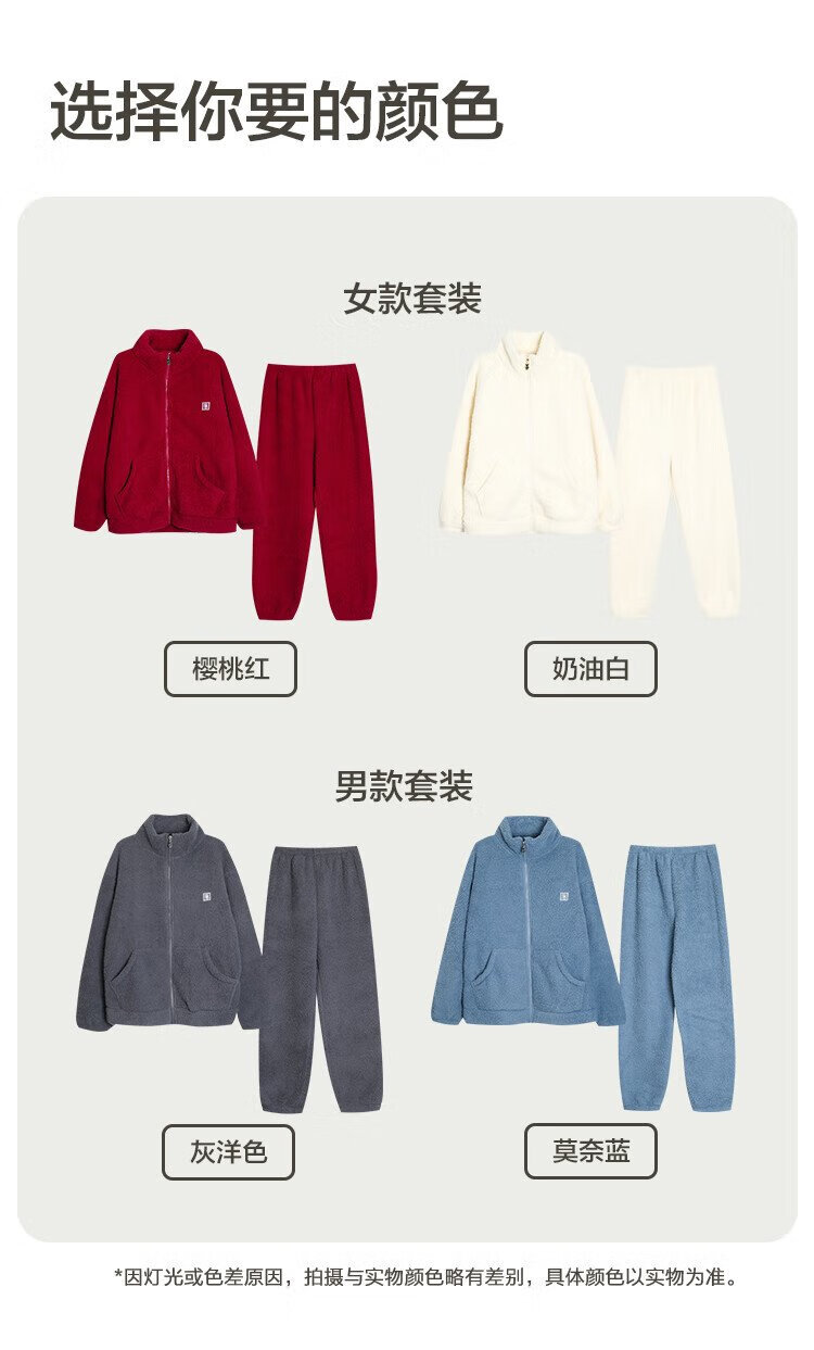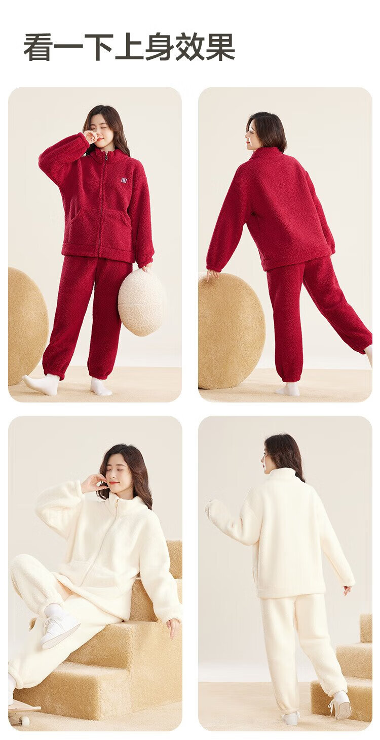 Red Bean Home Lamb Velvet Pajamas Men's Autumn and Winter Plus Velvet Thickened Cardigan Men's Home Clothes Zipper Style Monet Blue 175/96A