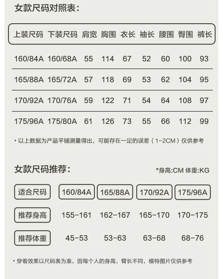 China (cm) 160-165/84-86 165-170 / 88-90 167-172 / 92-96 168-173 / 98-102 170-176 / 106-110