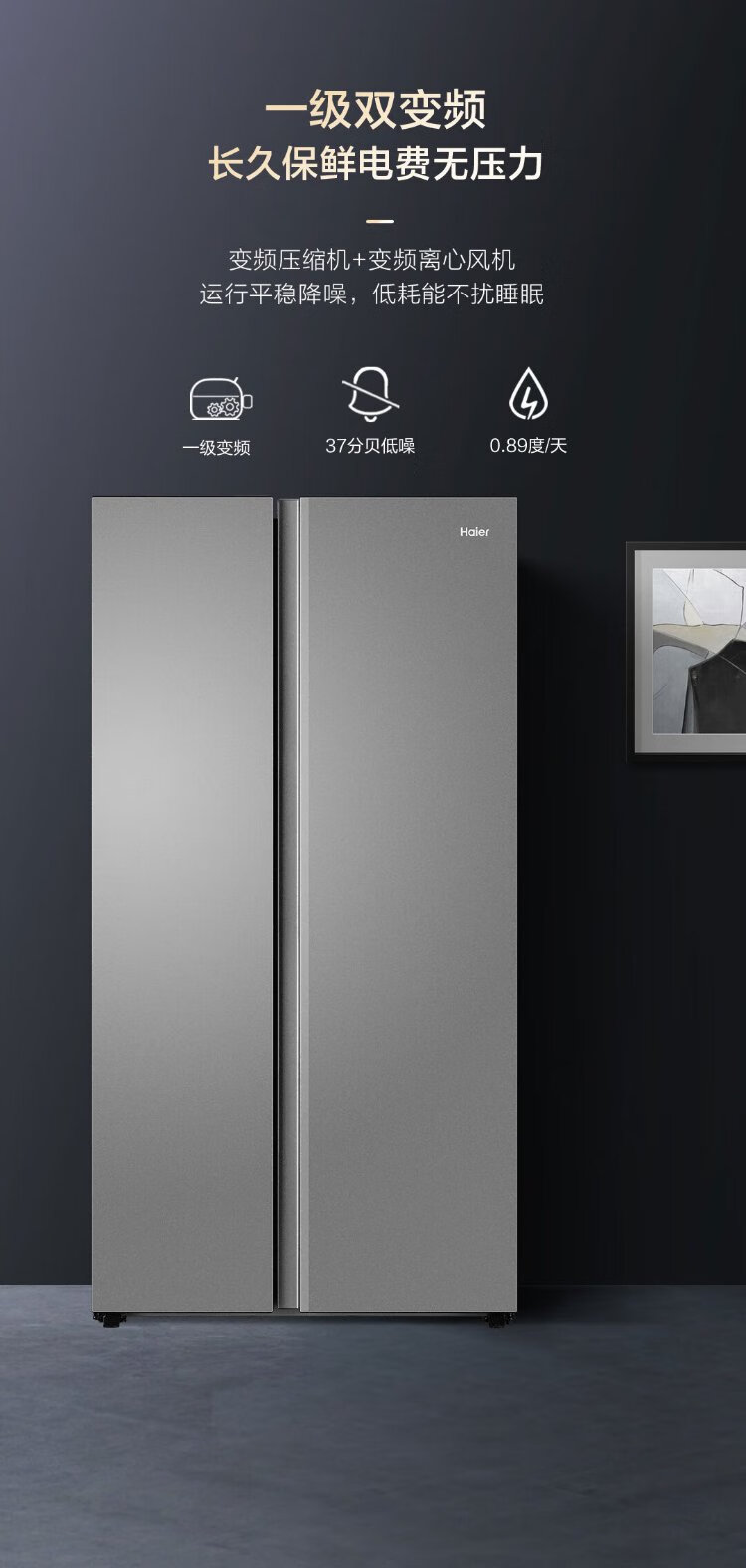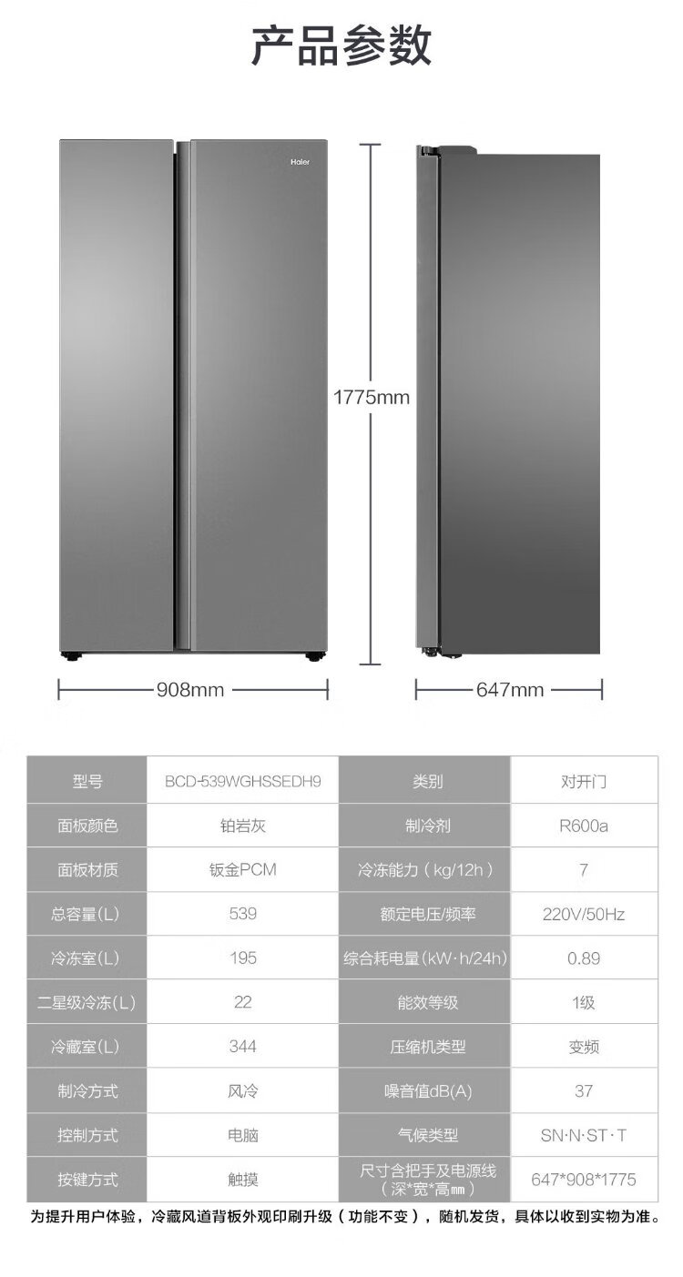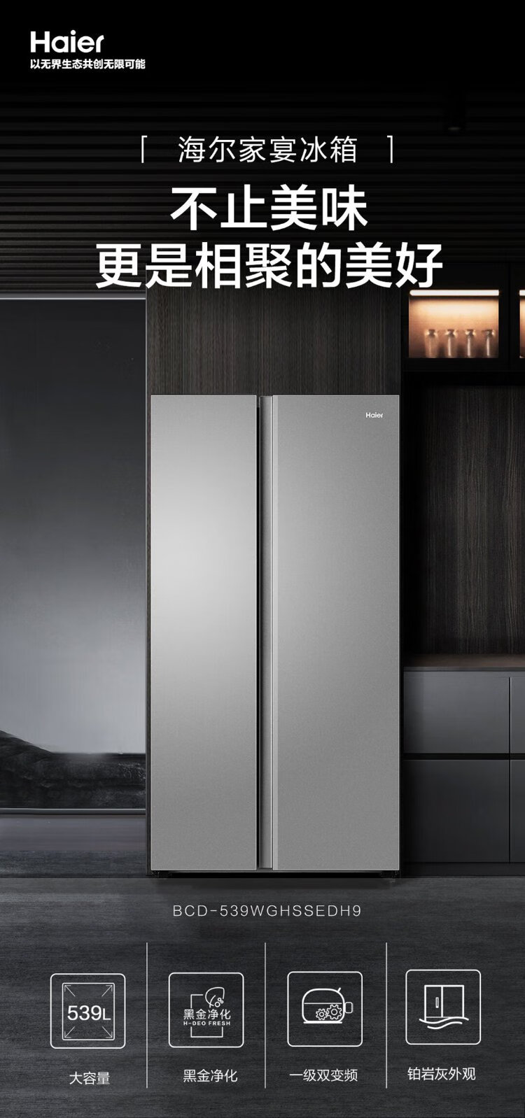 Haier Family Banquet 539 liters air-cooled frost-free door-to-door household refrigerator double-door first-class energy efficiency and energy saving 535 upgraded model BCD-539WGHSSEDH9 20% national subsidy