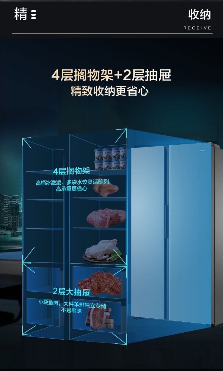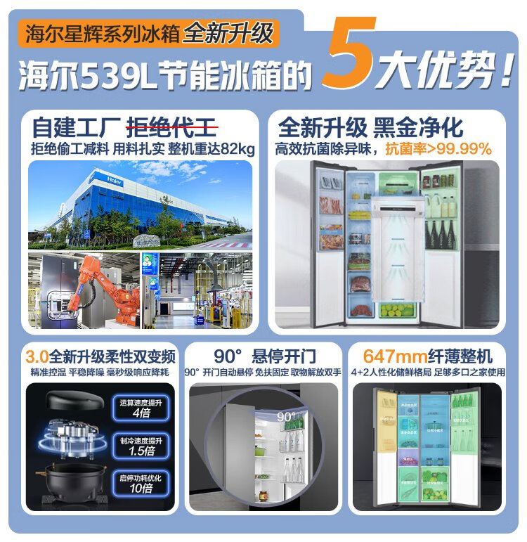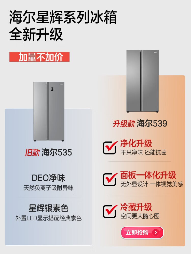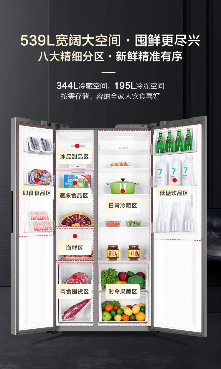 Haier Family Banquet 539 liters air-cooled frost-free door-to-door household refrigerator double-door first-class energy efficiency and energy saving 535 upgraded model BCD-539WGHSSEDH9 20% national subsidy