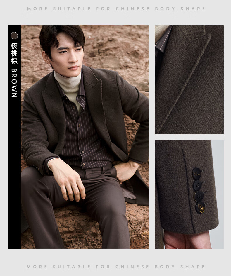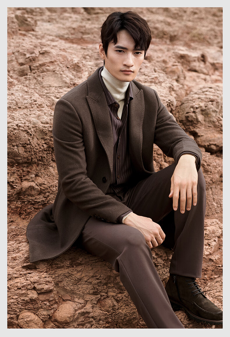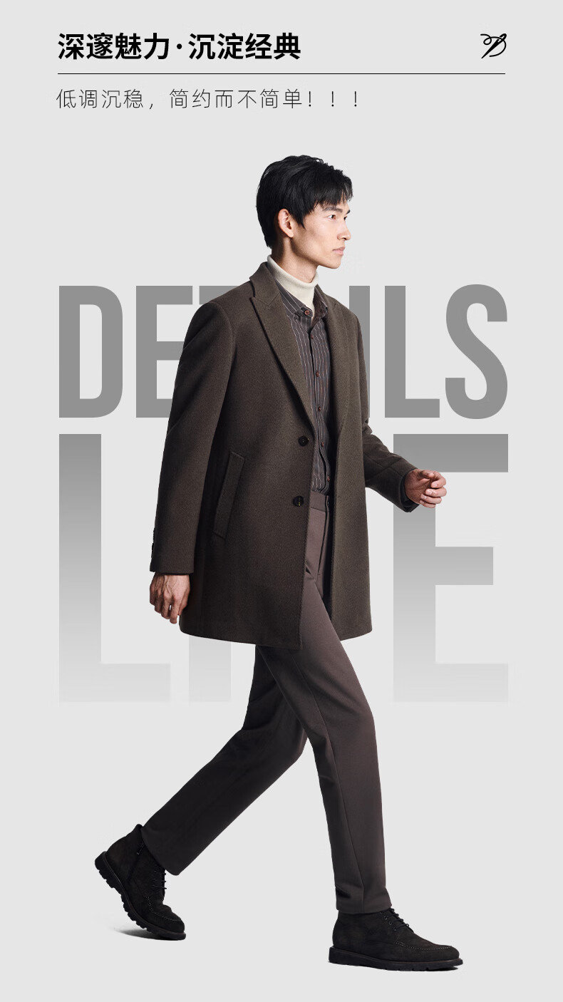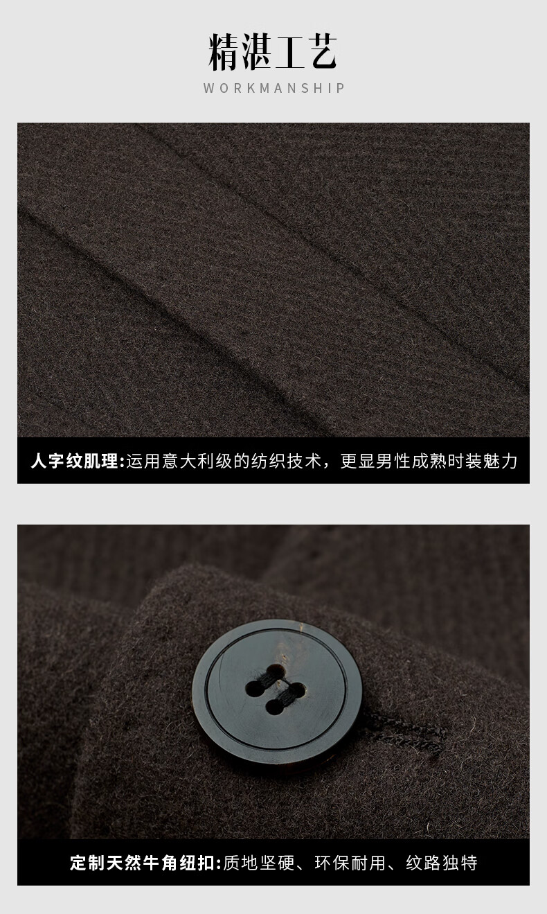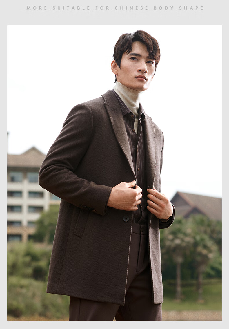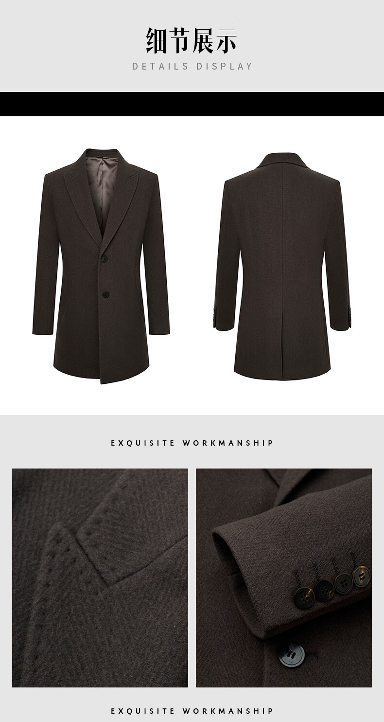 Angel Bird Men's Wool Coat Business Formal Patch Collar Wool Coat KEBS243032U Walnut Brown 48
