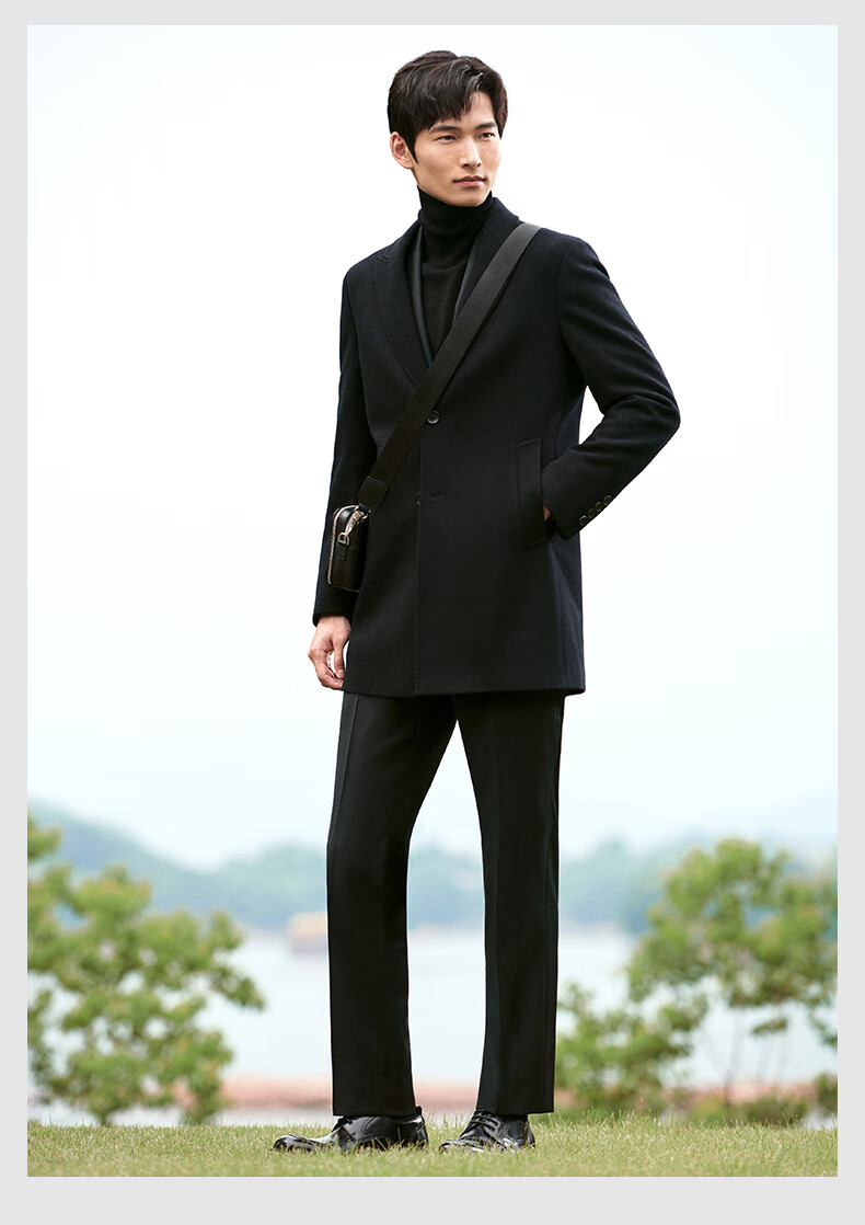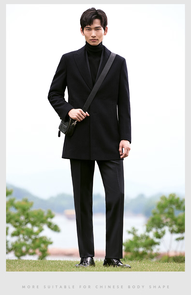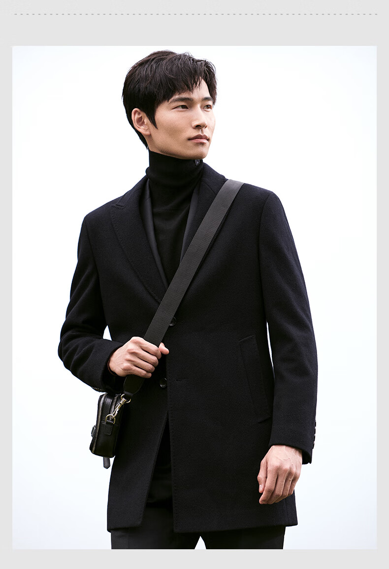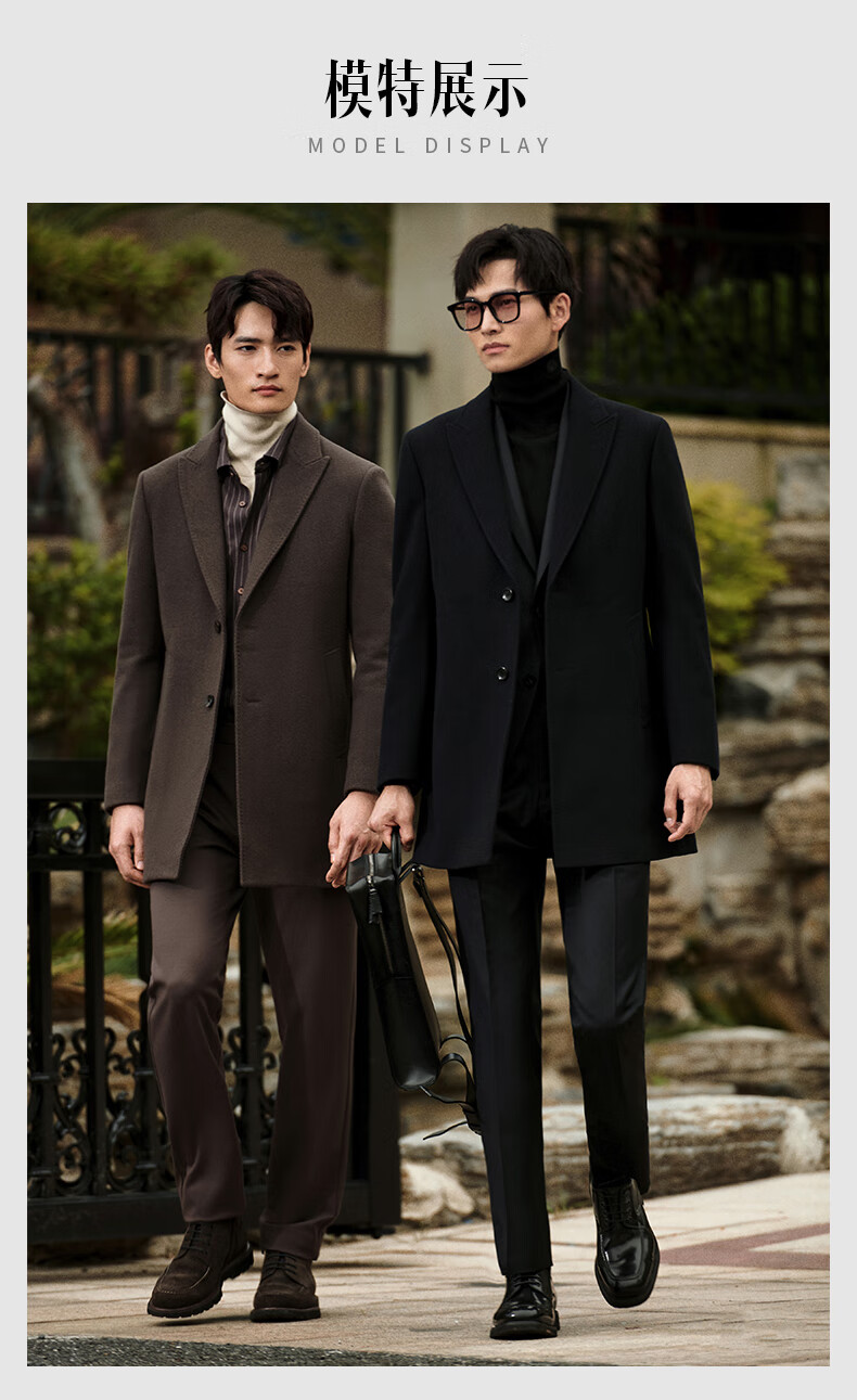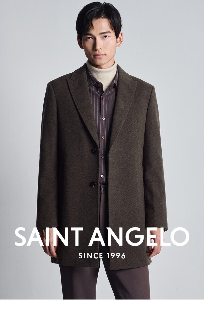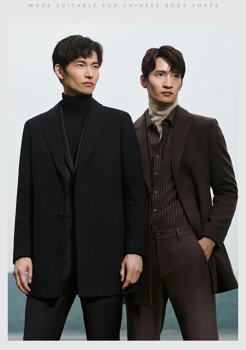 Angel Bird Men's Wool Coat Business Formal Patch Collar Wool Coat KEBS243032U Walnut Brown 48