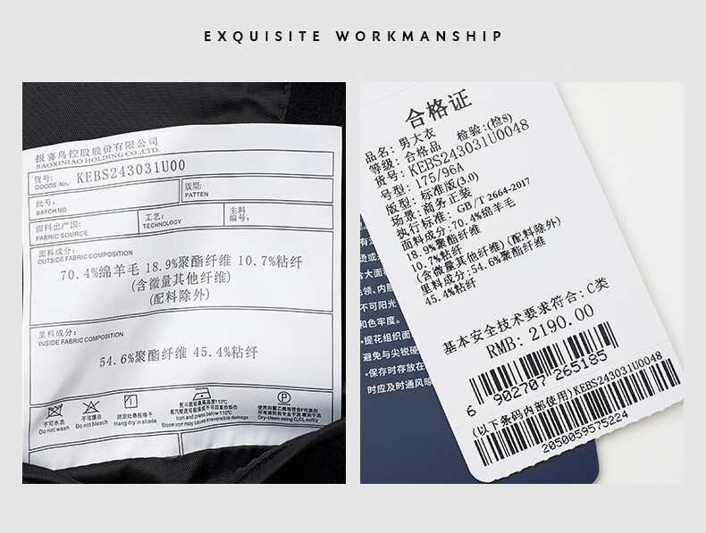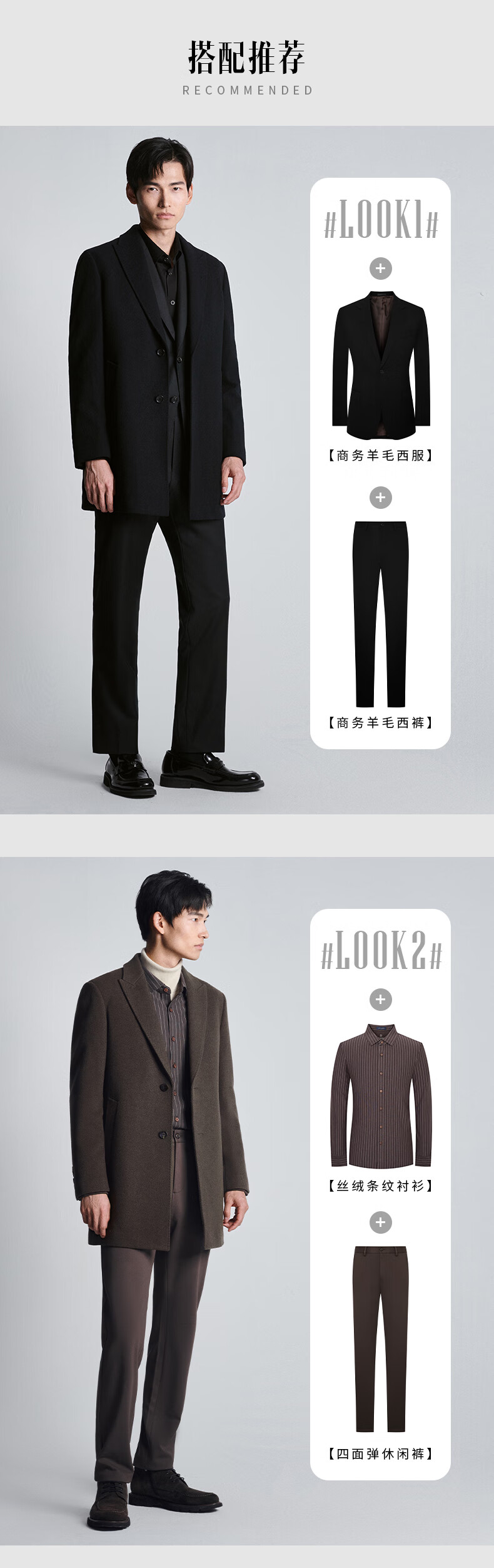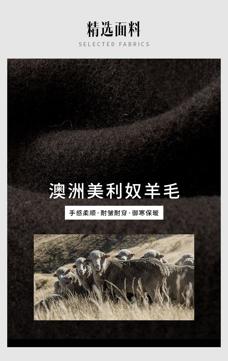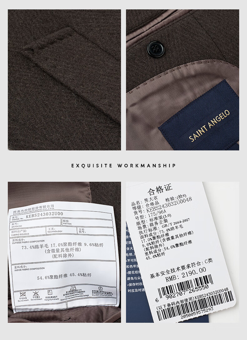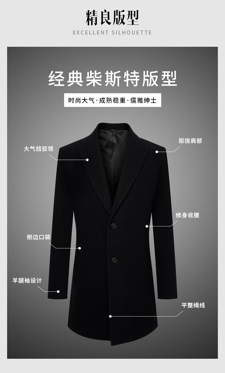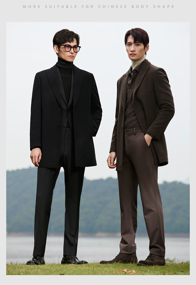 Angel Bird Men's Wool Coat Business Formal Patch Collar Wool Coat KEBS243032U Walnut Brown 48