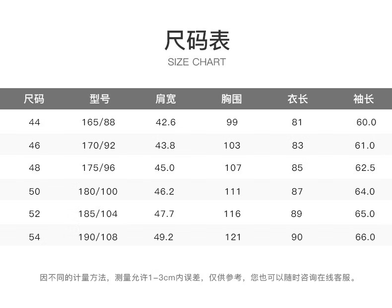 China (cm) 165 / 88-90 170 / 96-98 175 / 108-110 180 / 118-122 185 / 126-130