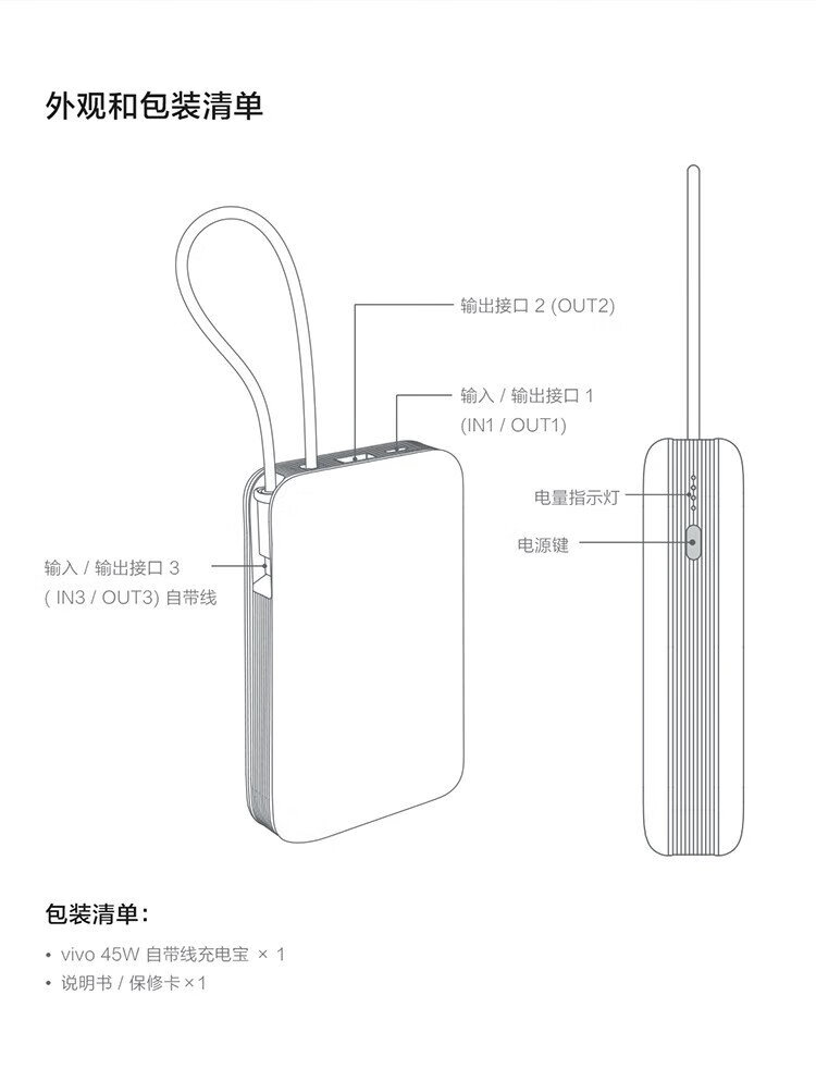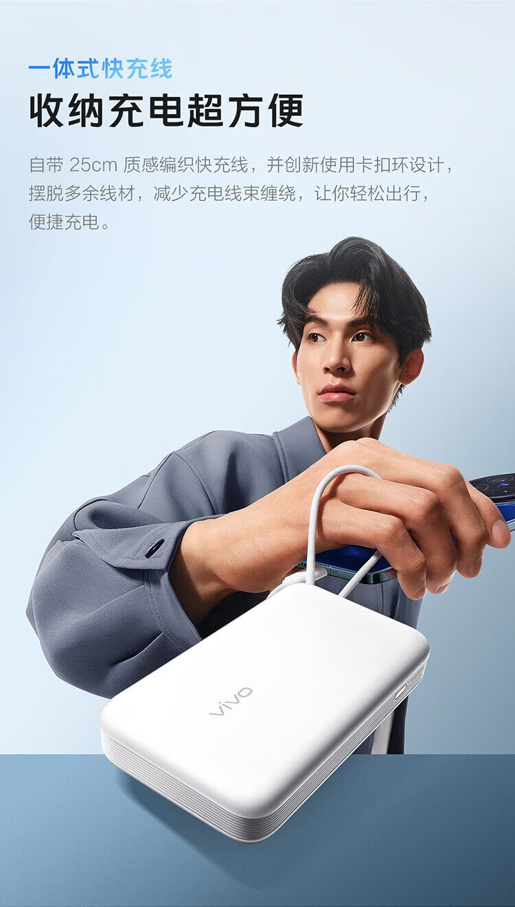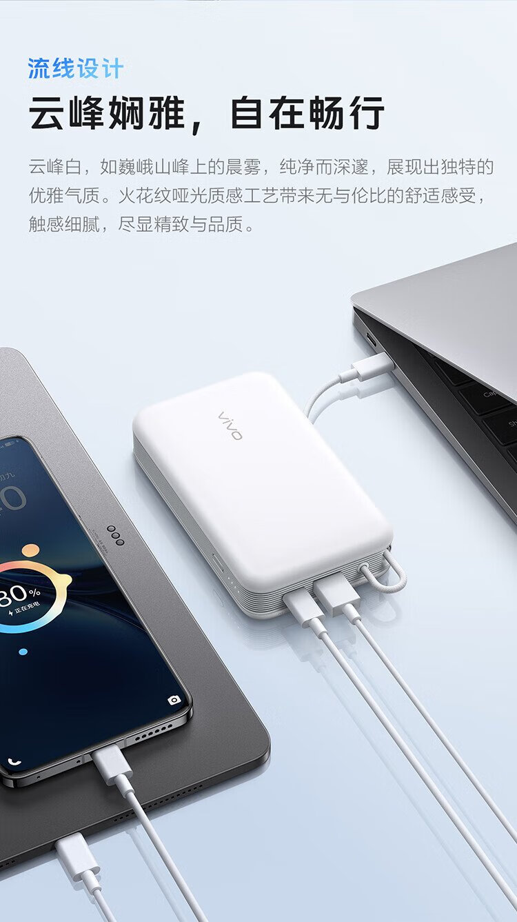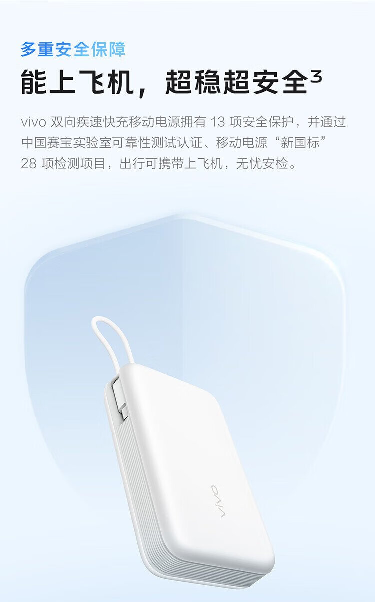 Vivo45W comes with a 20,000 mAh wired power bank. It is 3C certified and can be used on airplanes. It supports iPhone 17 fast charging and is compatible with Apple, Xiaomi, Huawei, OPPO iQOO.