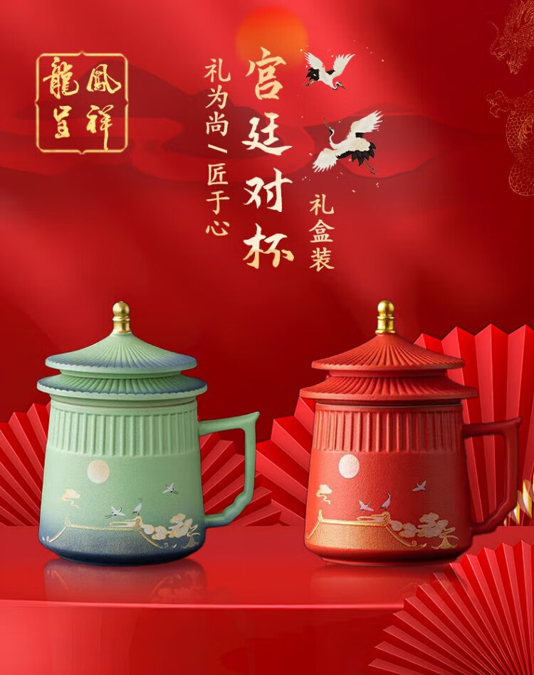 Apollo's Dream Forbidden City style cultural and creative wedding gifts for newlyweds and newlyweds for engagement Chinese Valentine's Day couple water cup pair cup dragon and phoenix cup gift