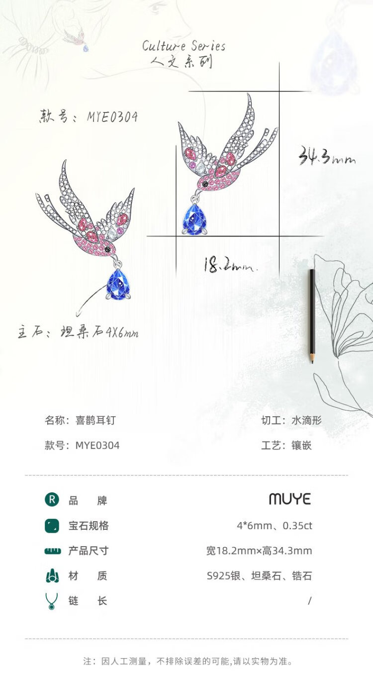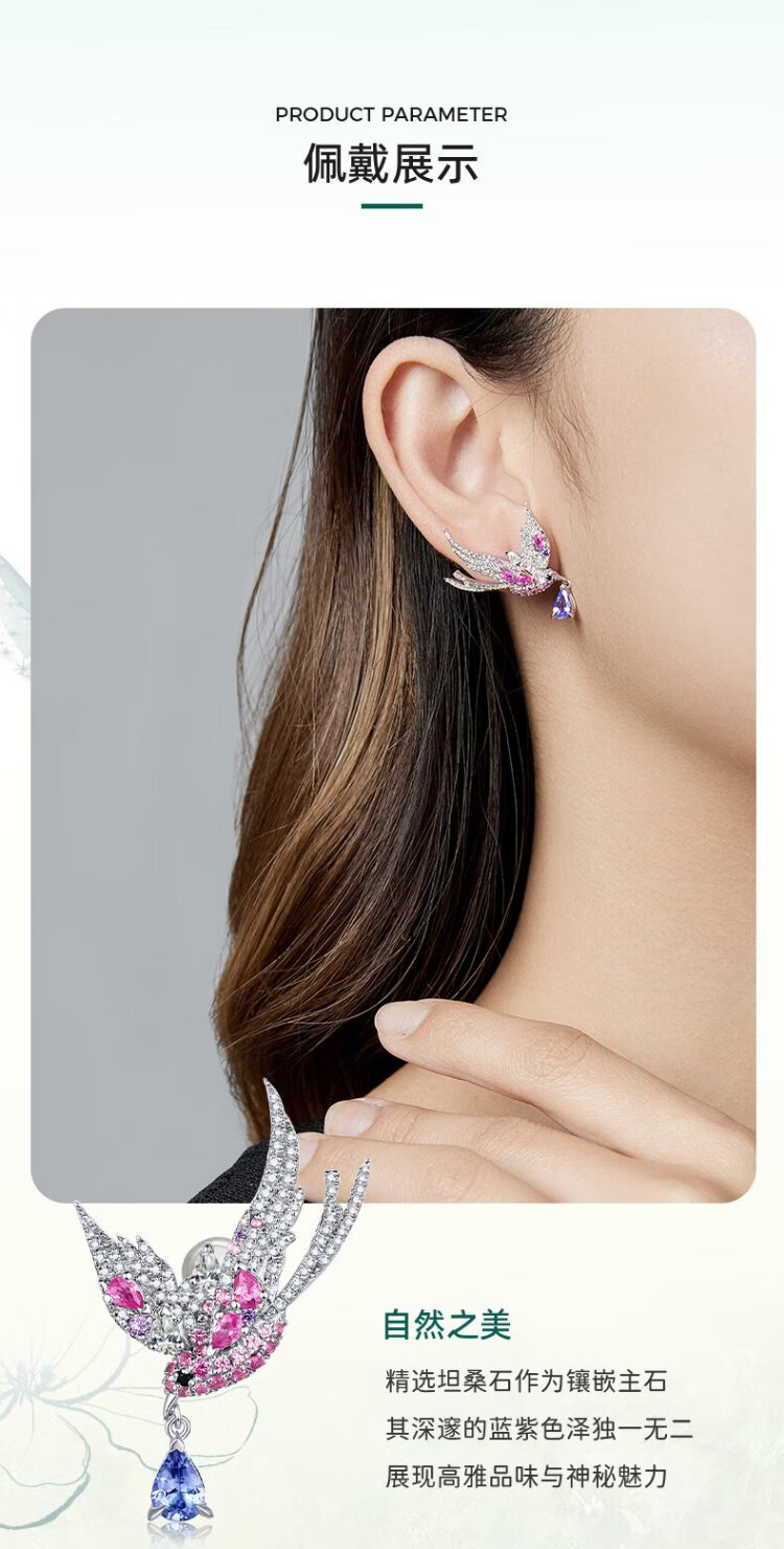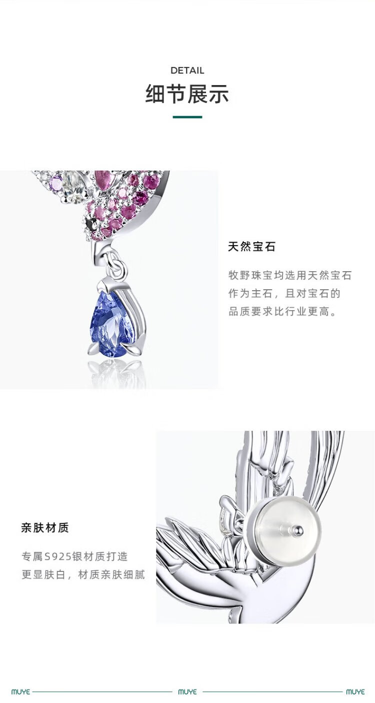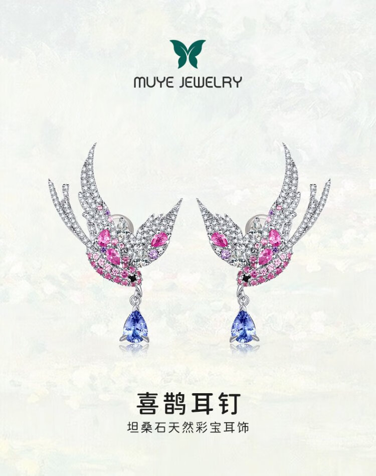 Makino Natural Colored Treasure 925 Silver Tanzanite Gemstone Earrings Magpie Earrings Original Design Colored Treasure Earrings