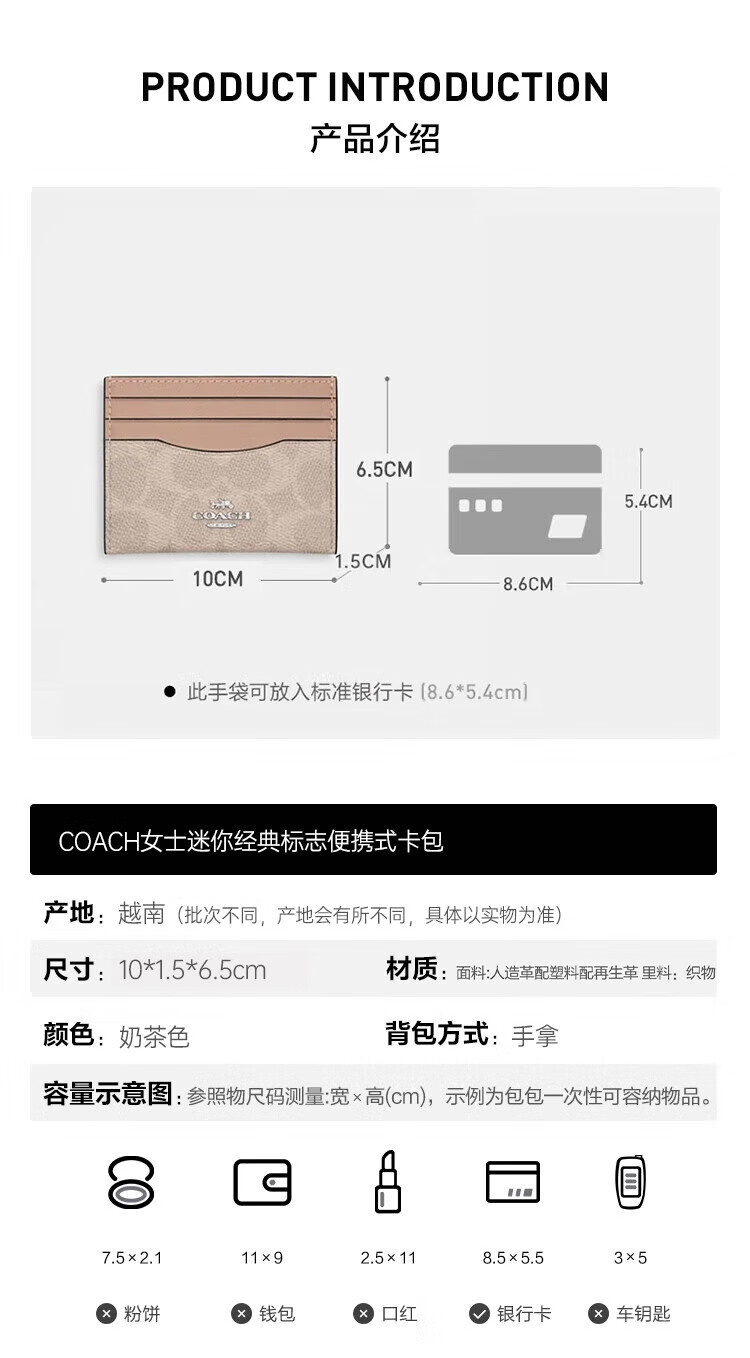 COACH brand direct supply women's mini classic logo portable card holder ID bag milk tea color CZ286