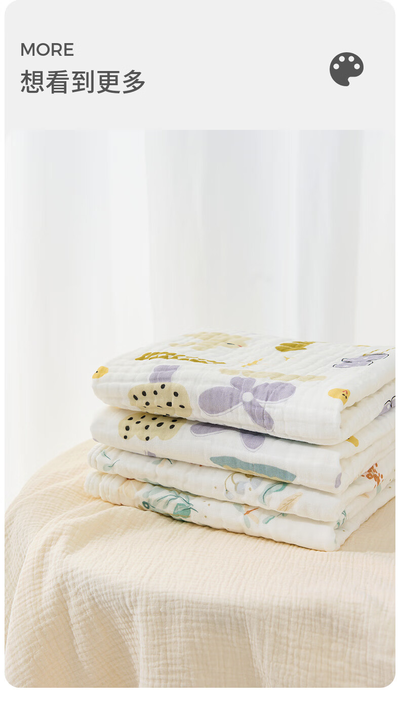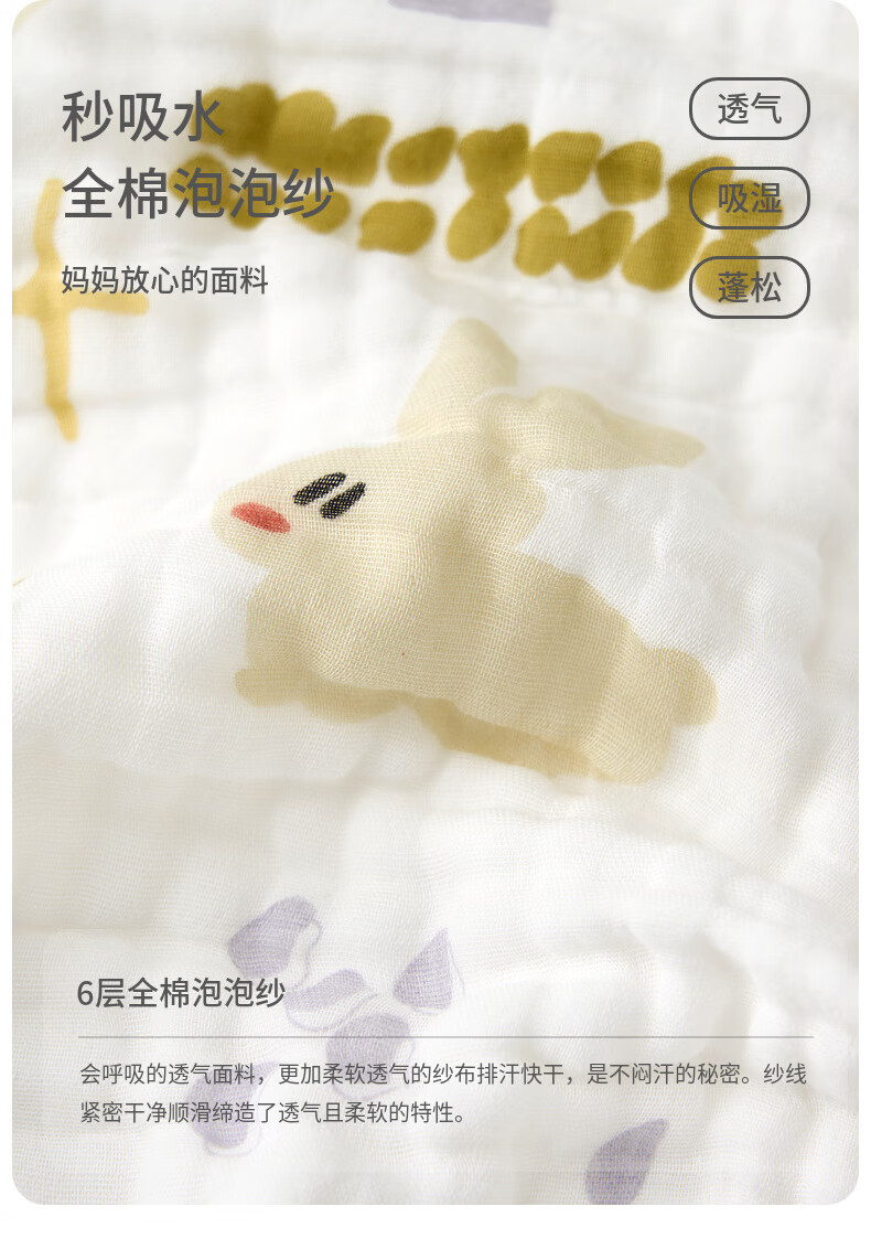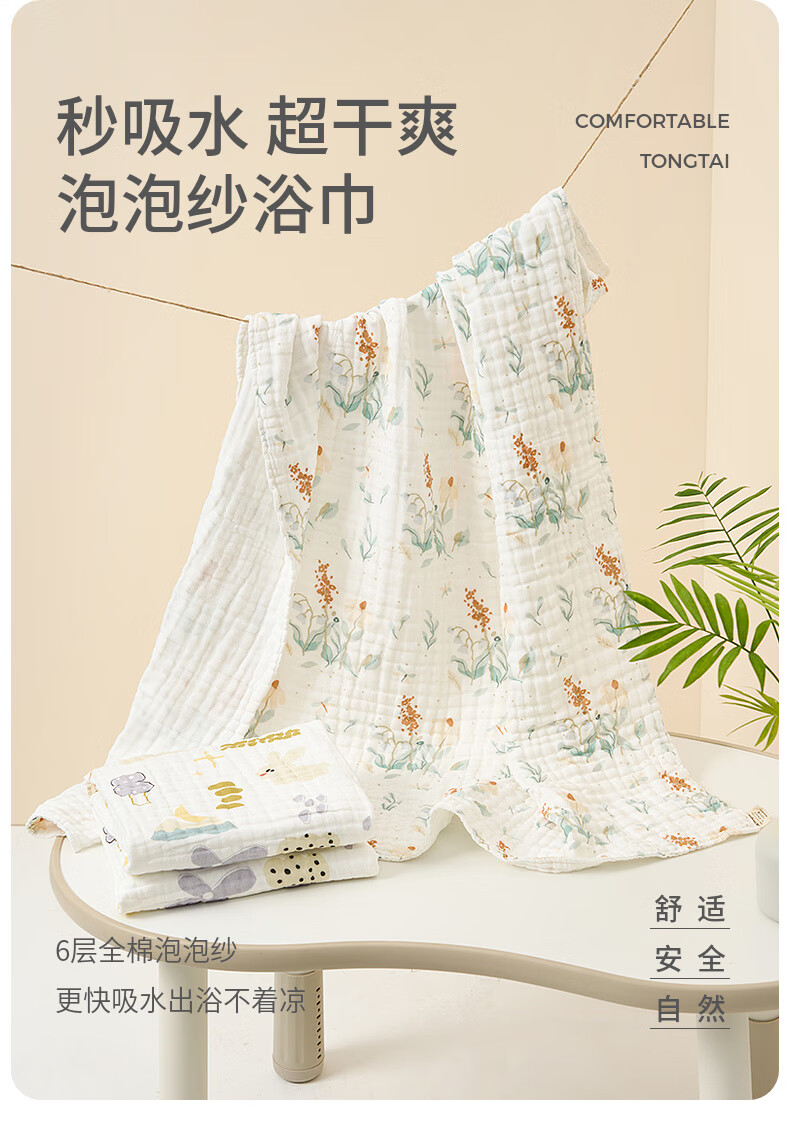 Tongtai (TONGTAI) baby bath towel pure cotton baby absorbent wrap children's cotton bath towel 6-layer seersucker cover blanket green