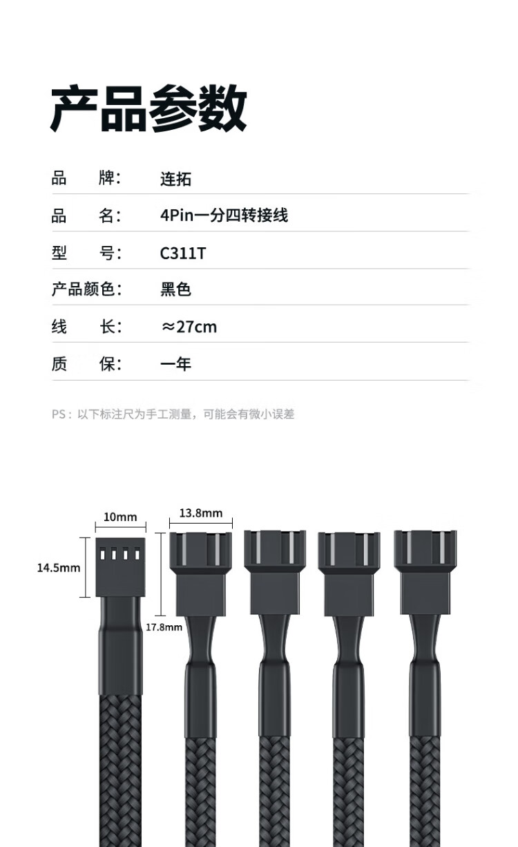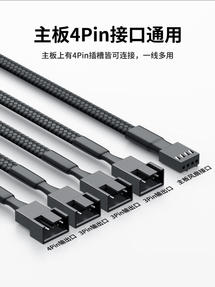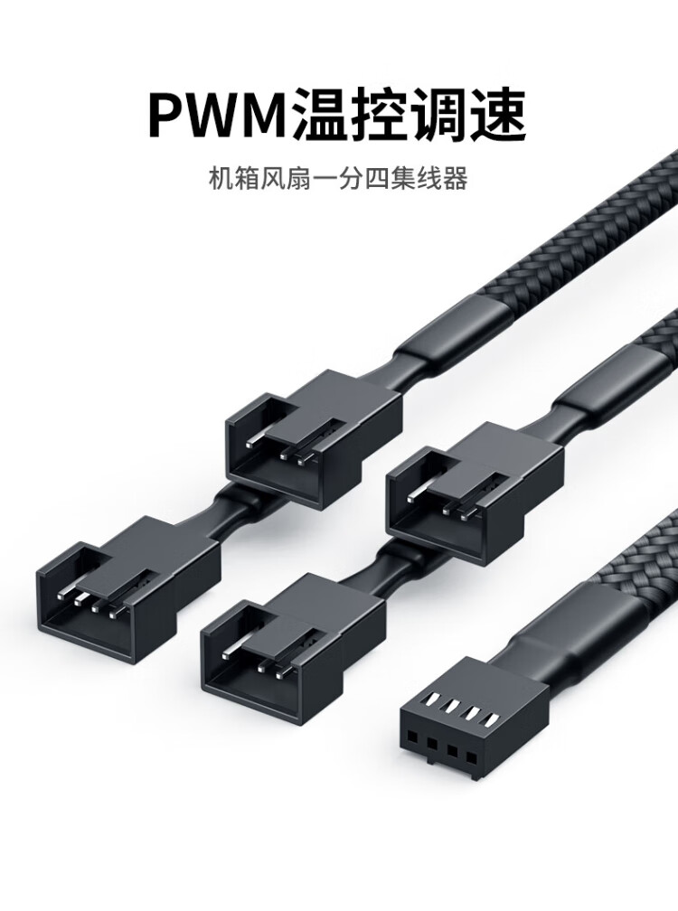 Liantuo 4Pin chassis host fan extension cable, one-to-four desktop computer motherboard 3Pin hub HUB splitter, one-to-four adapter cable, supports PWM intelligent temperature control