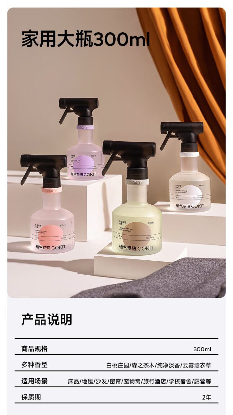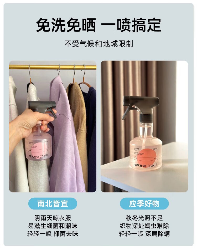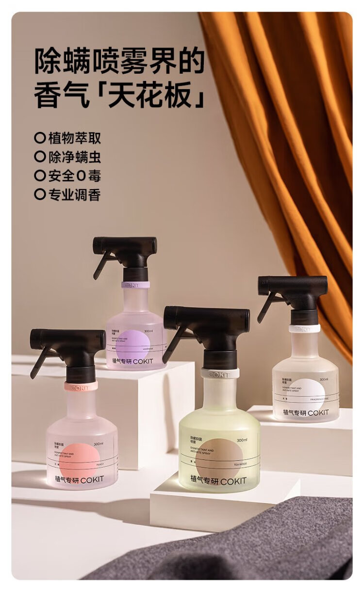 Zhiqi specializes in removing mites and antibacterial sprays, bedding, no-wash, sunscreen, mites, pregnant women and babies, plants to remove mites, tea and woody fragrance 300ml