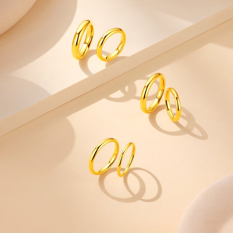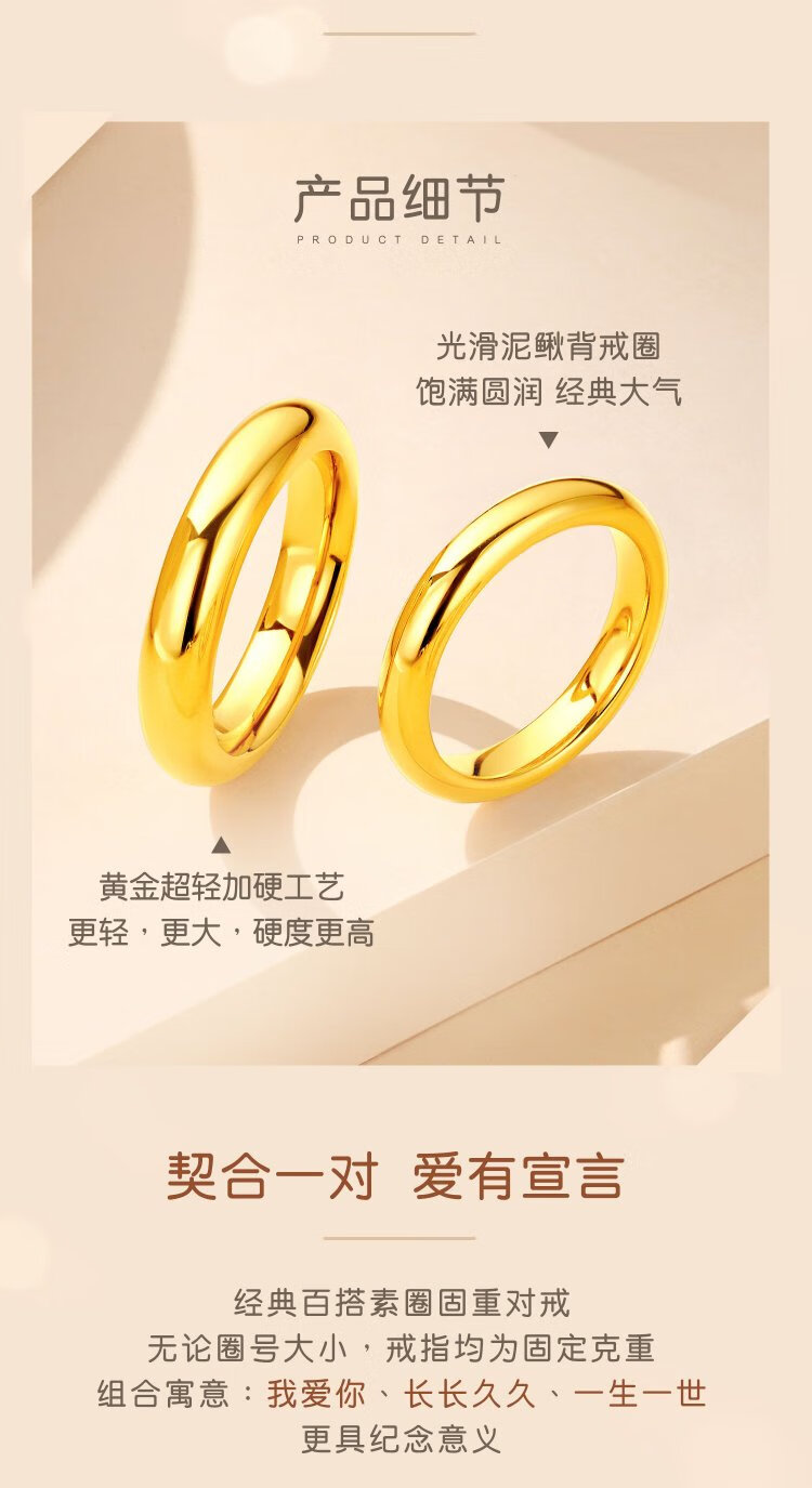 Lukfook Jewelry Long Lasting Gold Ring Loach Back Pure Gold Pair of Rings for Women Price Size 14 - About 3.33g