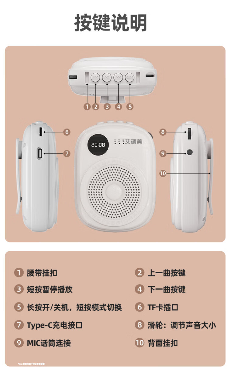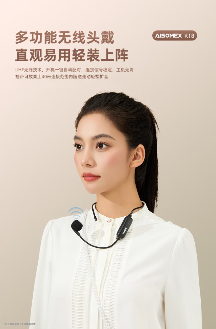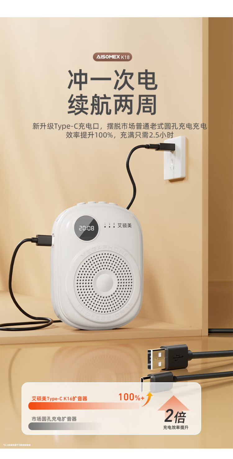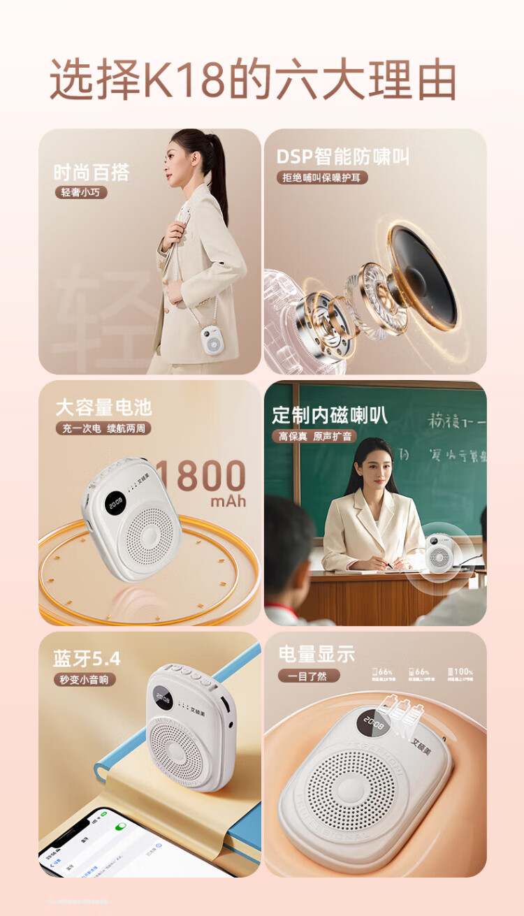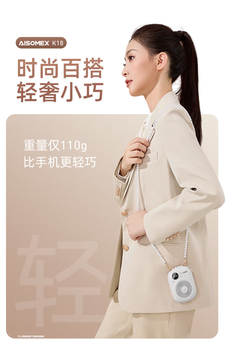 Aishomei K18 Wireless Bee Loudspeaker Teacher's Special Class Teaching Microphone Outdoor Tour Guide Shopping Guide Small Speaker Speaker White