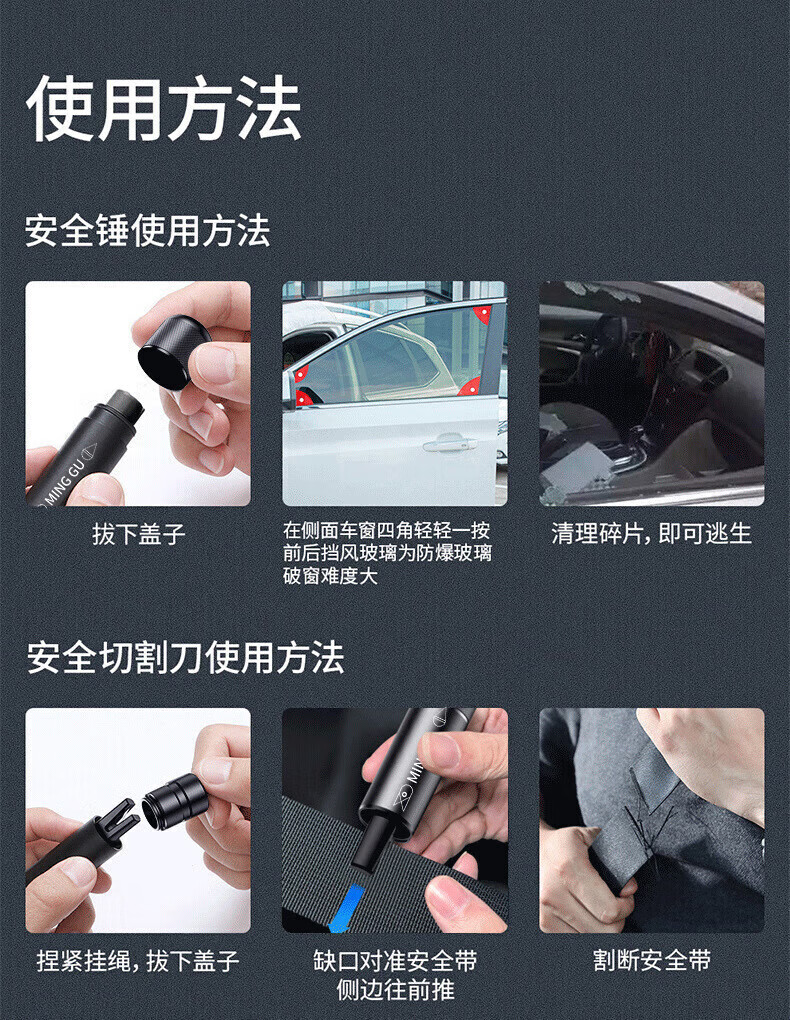 Minggu window-breaking artifact car safety hammer multi-functional emergency rescue life-saving hammer car-mounted escape hammer breaks windows in one second CW992235