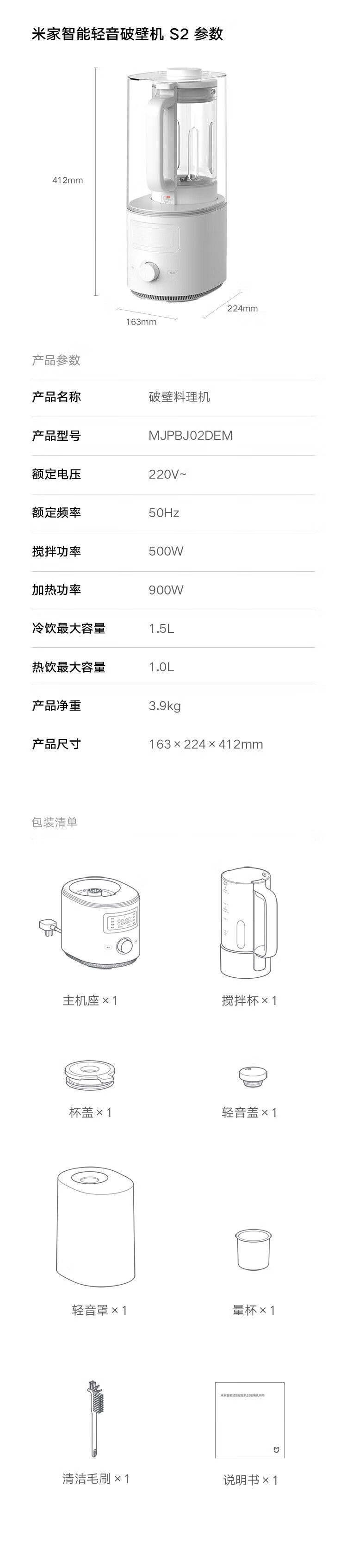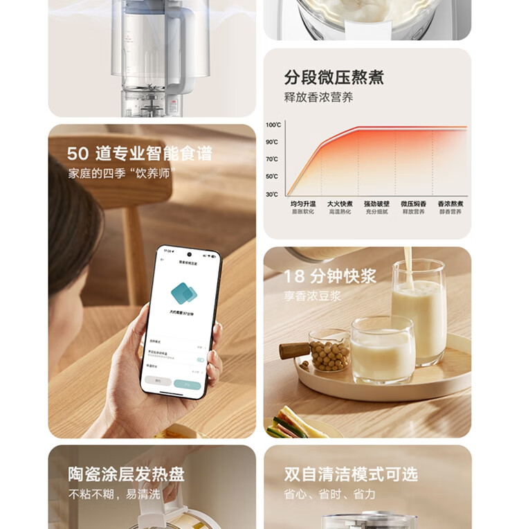 Mijia Xiaomi Smart Soft Wall Breaker S2 Multifunctional Soybean Milk Machine Juicing Cooking Children's Food Supplementary Machine Fully Automatic Cleaning No Cooking No Filtration 1.5L