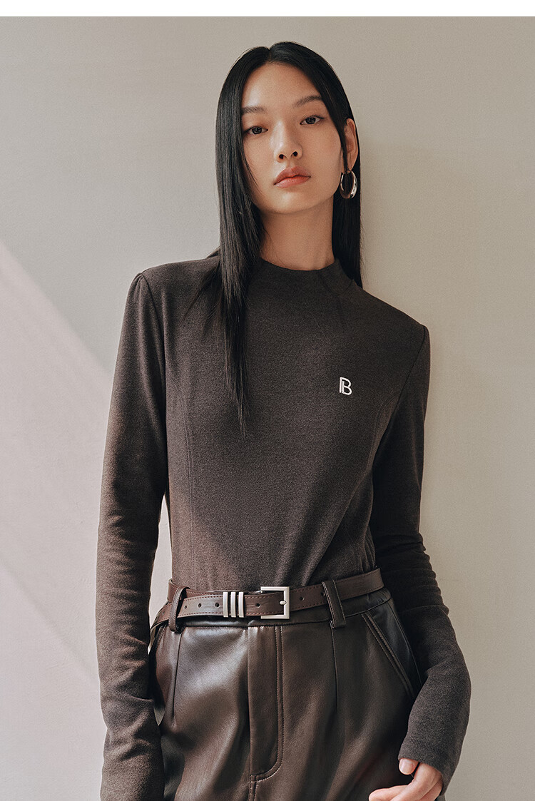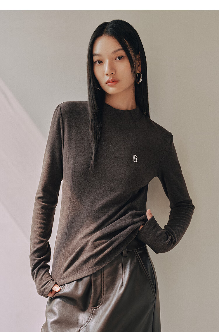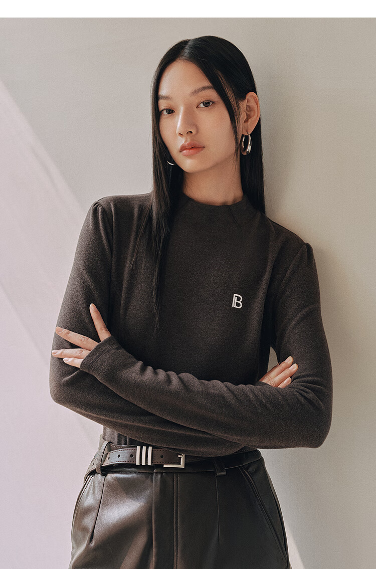 PEACEBIRD Women's Knitted Sweater Brushed Warm Slim Top Winter Women's Inner Long Sleeve Multicolor Dark Gray L