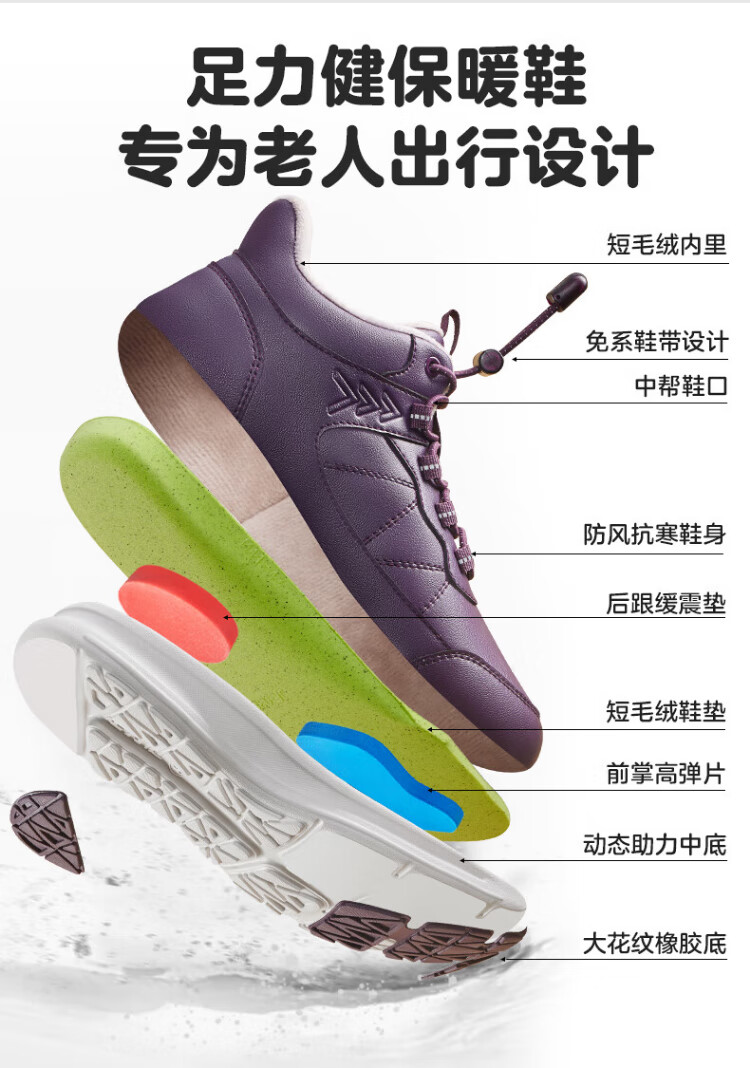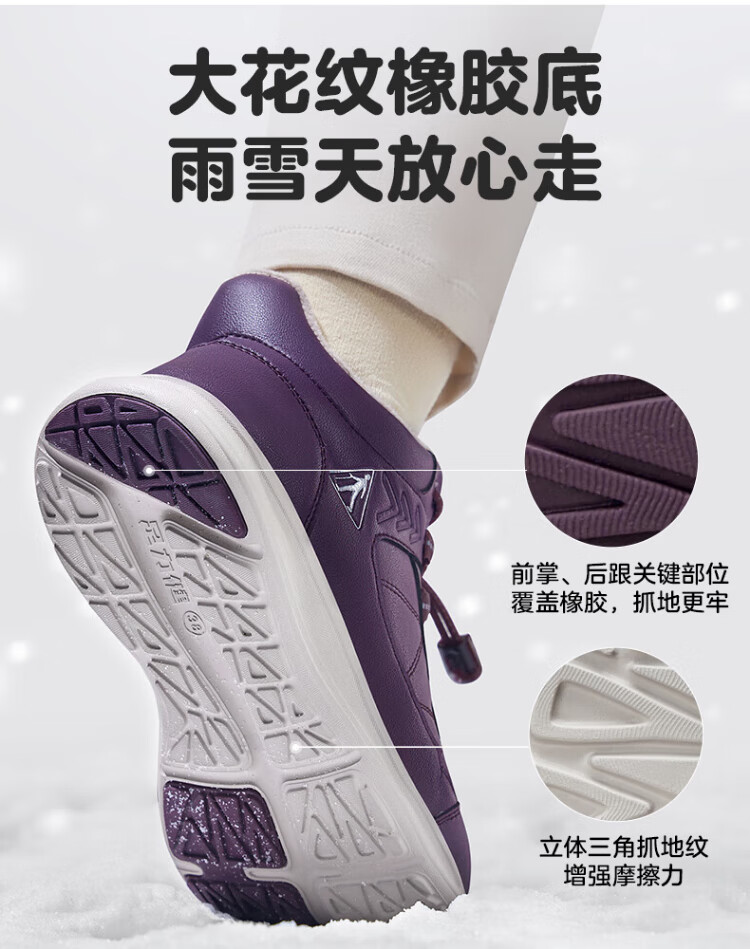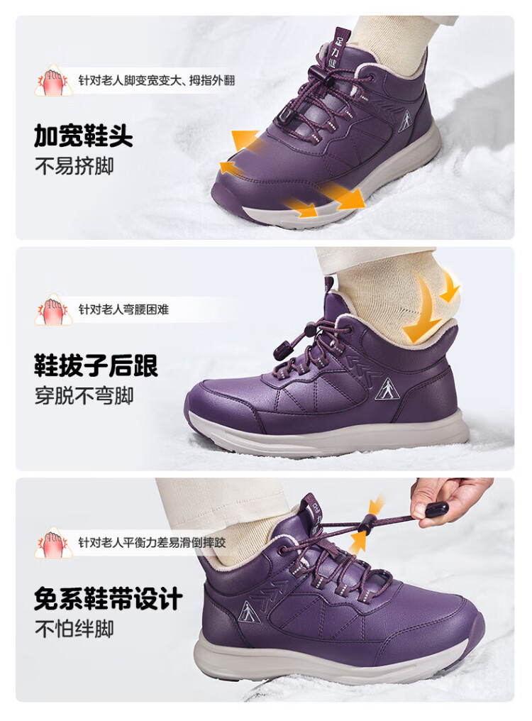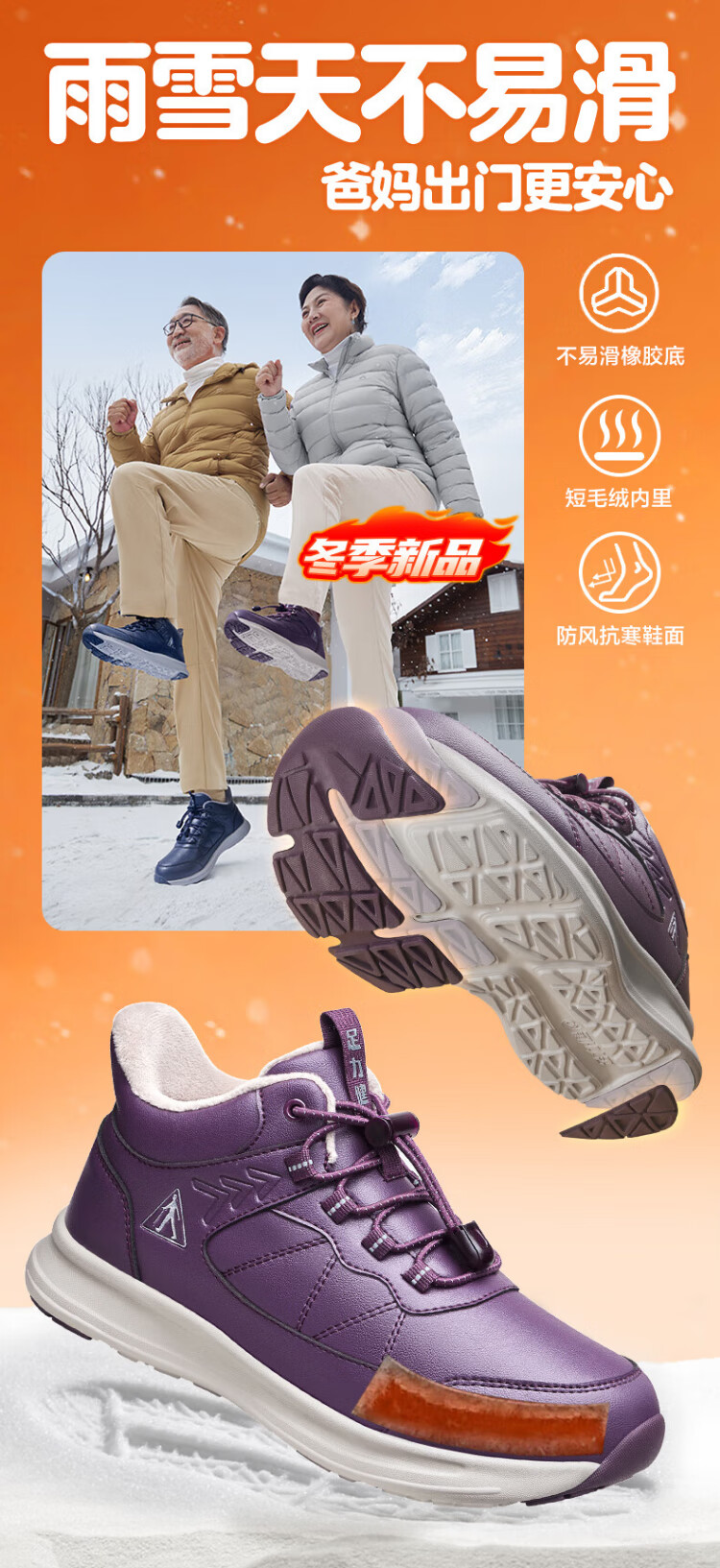 Zulijian elderly shoes winter cotton shoes plus velvet thickening middle-aged and elderly outdoor heat storage non-slip warm shoes 2493208J Purple-Female 38