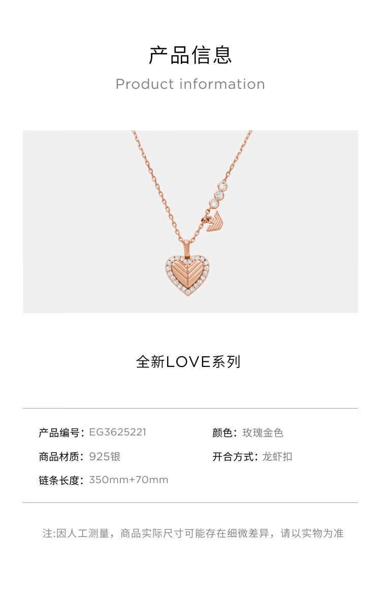 EMPORIO ARMANI Armani Women's Necklace Zircon Love Silver Necklace Birthday Gift for Girlfriend Next Day Delivery EG3625221