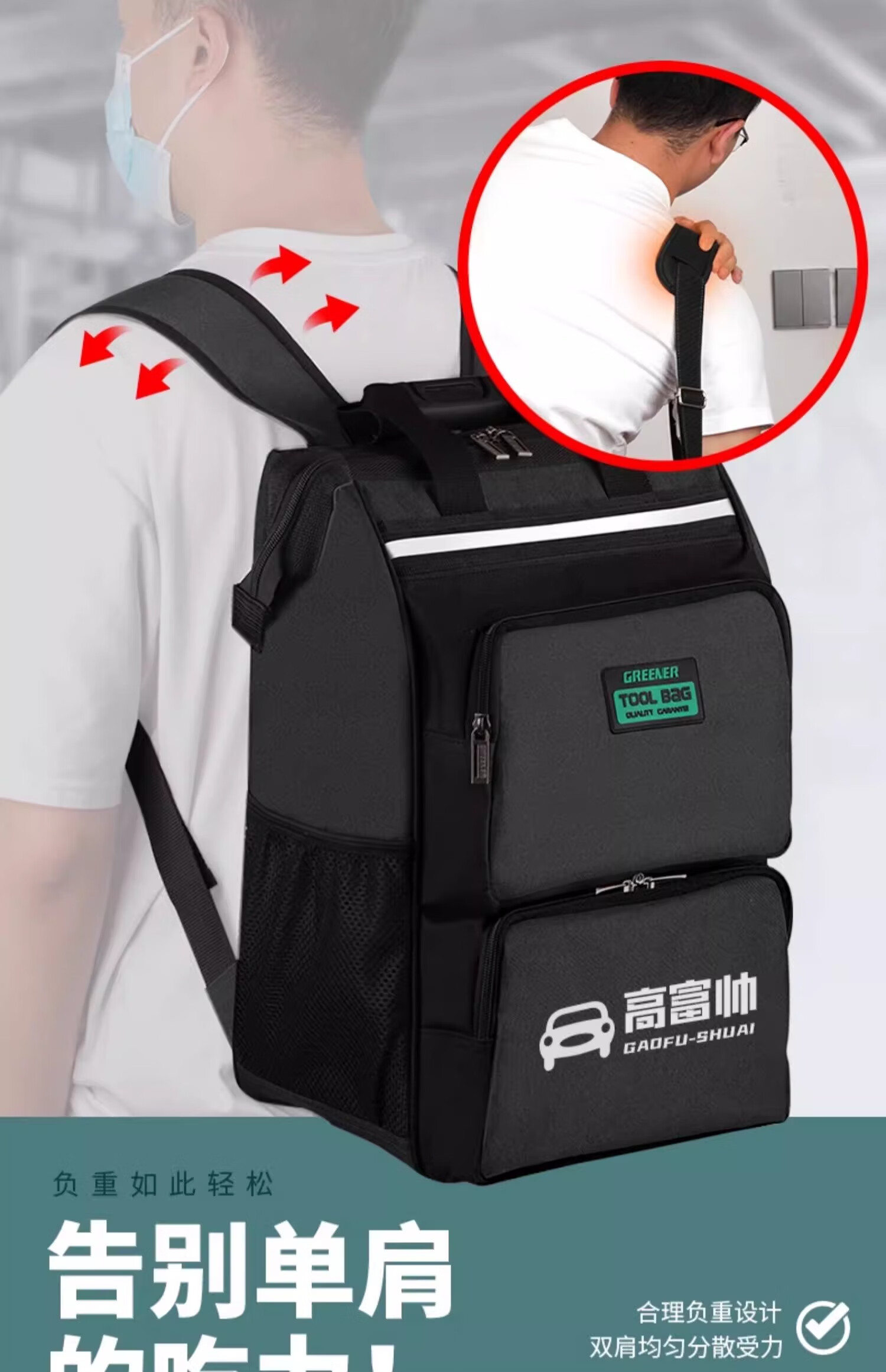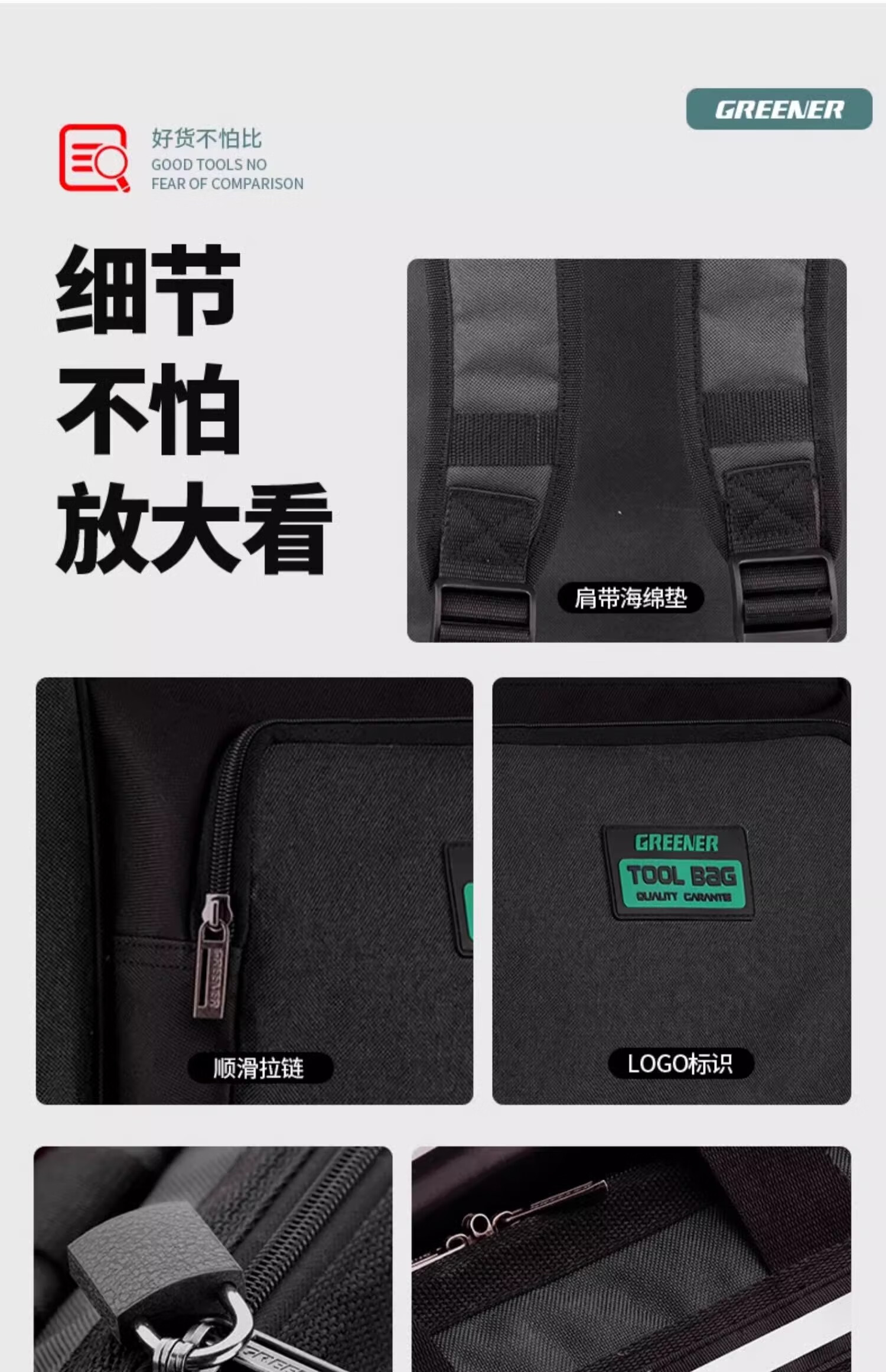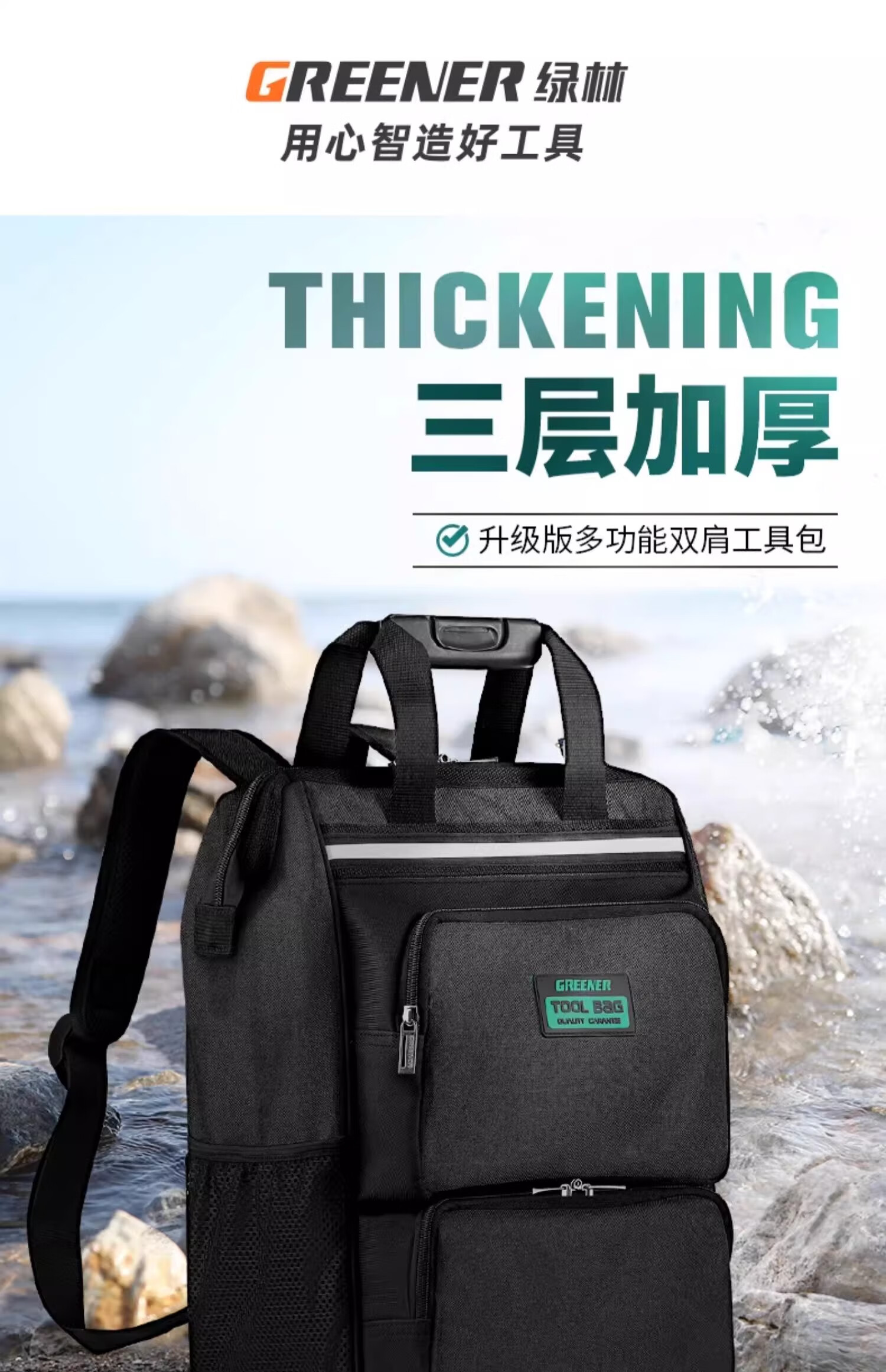 GREENER 16-inch multifunctional backpack tool bag durable canvas thickened hardware storage portable installation electrician home