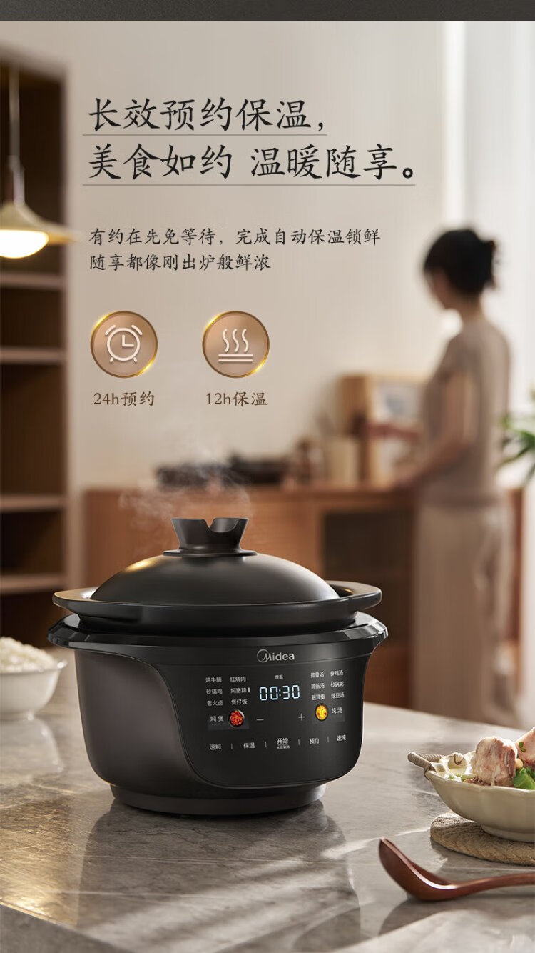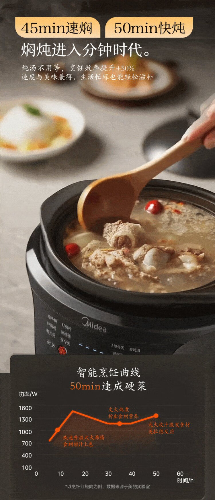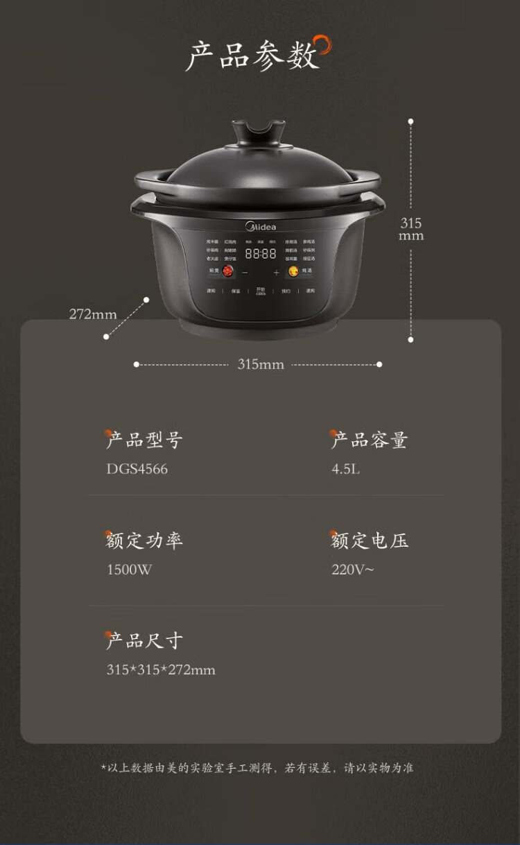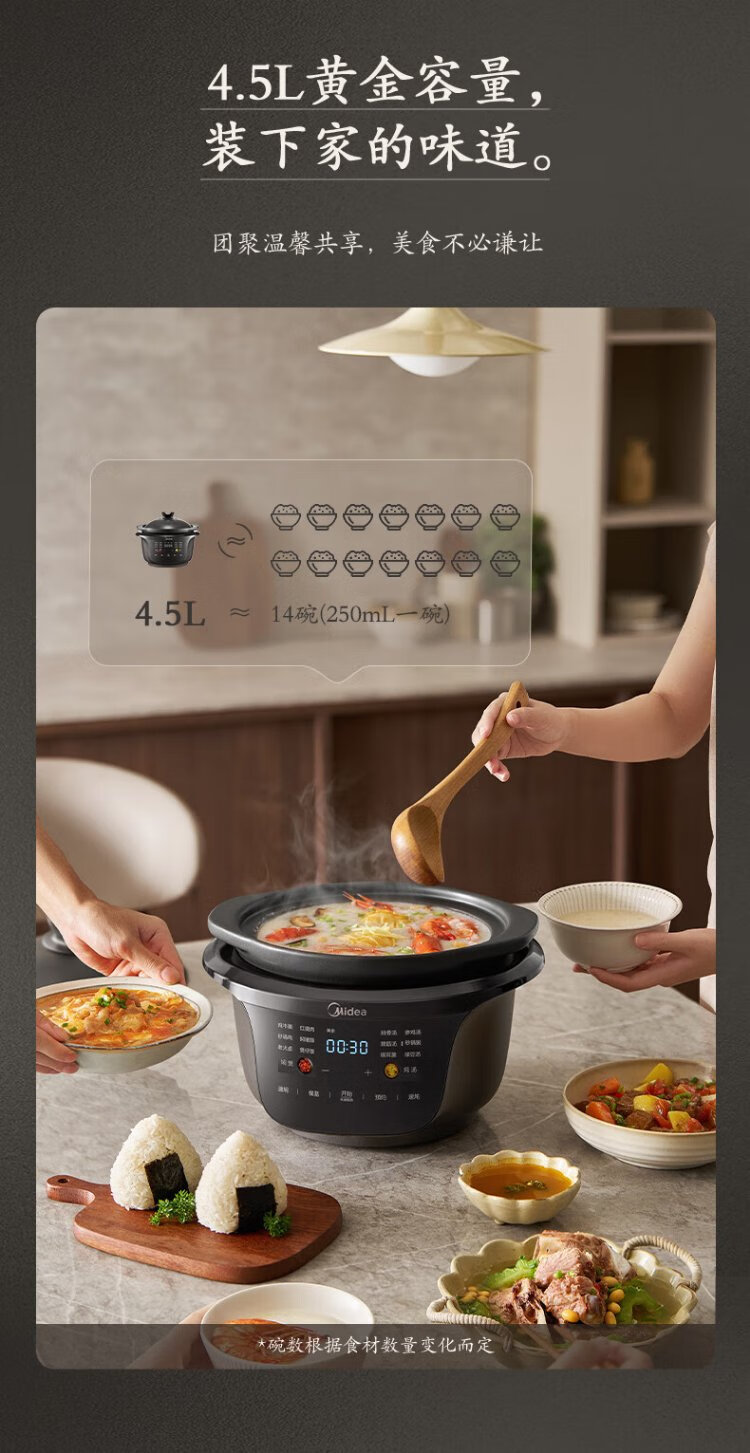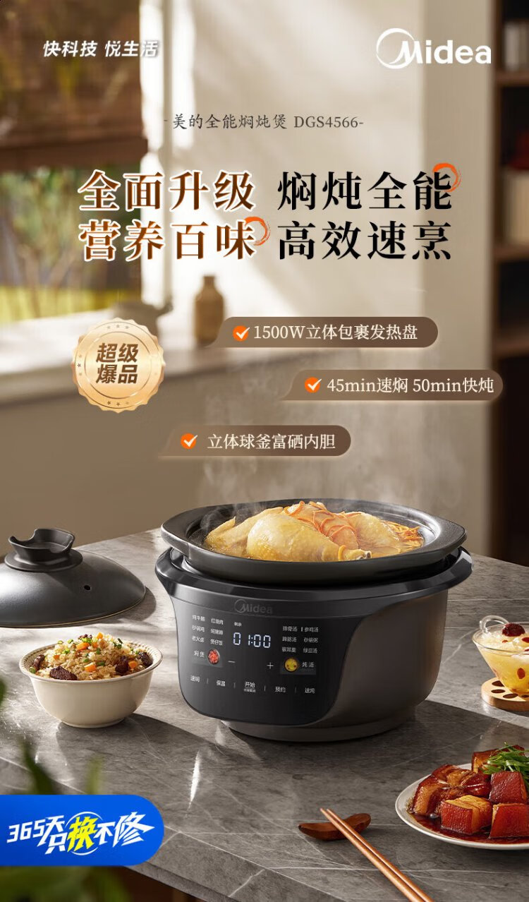 Midea all-purpose micro-pressure electric stew pot electric casserole 1500W high-power electric stew pot professional stew pot soup pot electric cooking pot 4.5L stew pot hot pot multi-function pot DGS4566