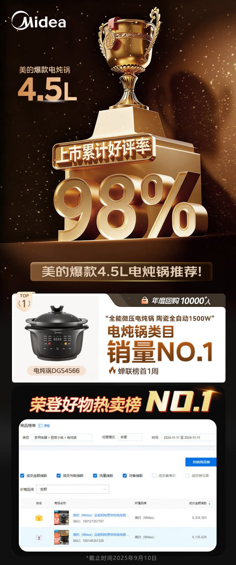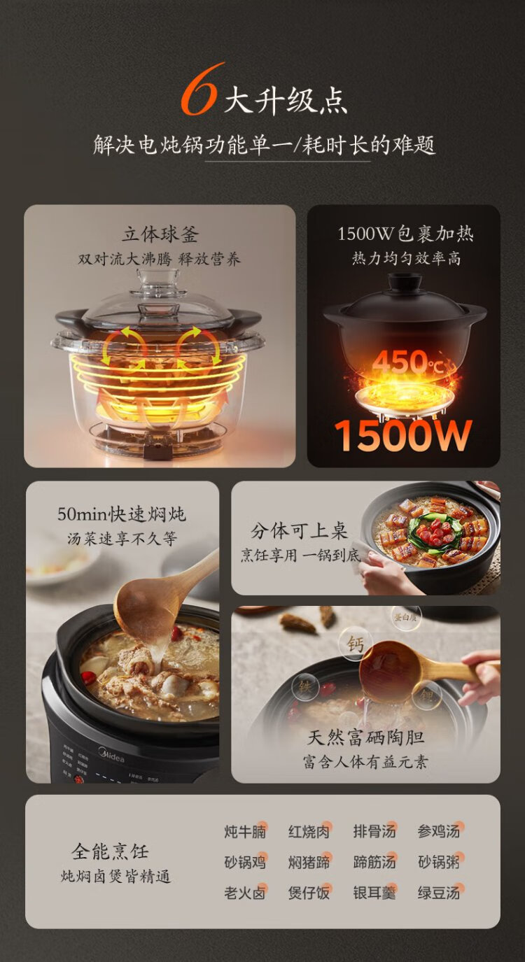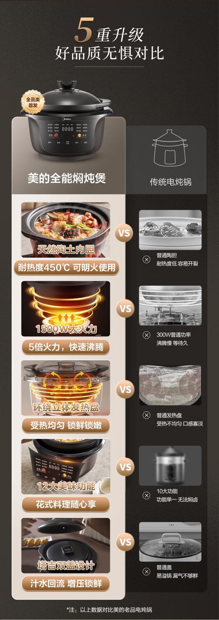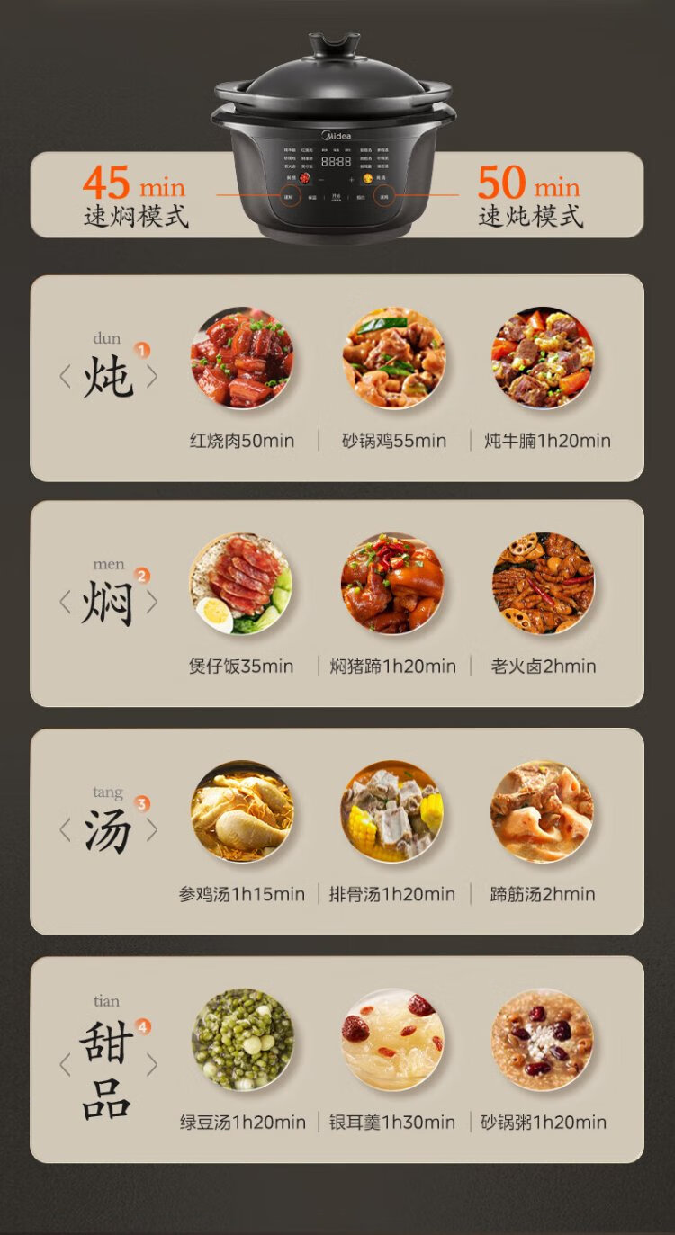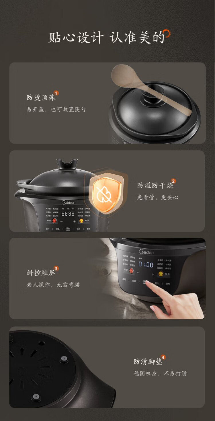 Midea all-purpose micro-pressure electric stew pot electric casserole 1500W high-power electric stew pot professional stew pot soup pot electric cooking pot 4.5L stew pot hot pot multi-function pot DGS4566