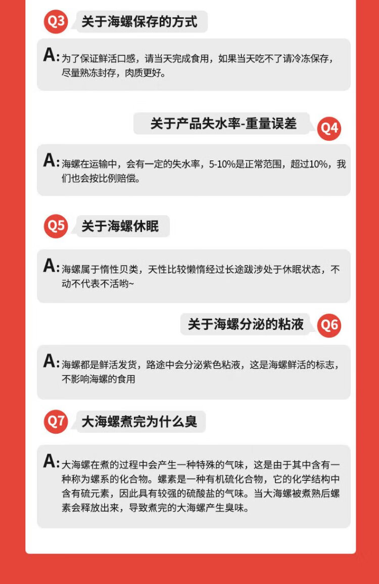 Fresh Jingcai fresh conch, net weight 2Jin Jin is equal to 0.5kg, 5-7 pieces/Jin Jin is equal to 0.5kg, fresh to your home, fresh seafood, straight from the source