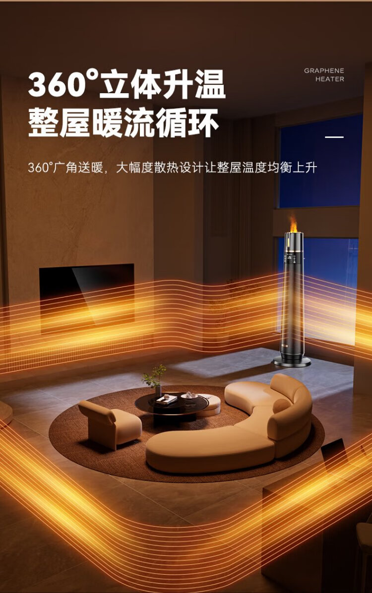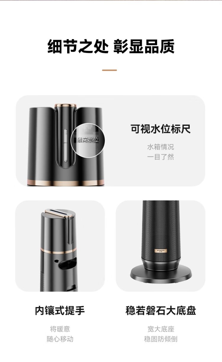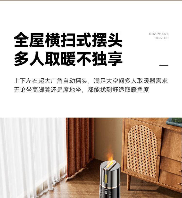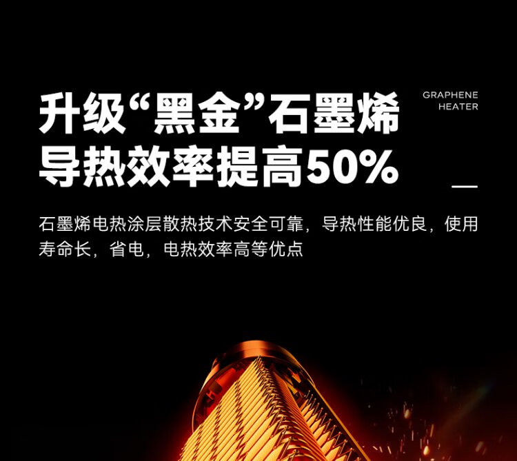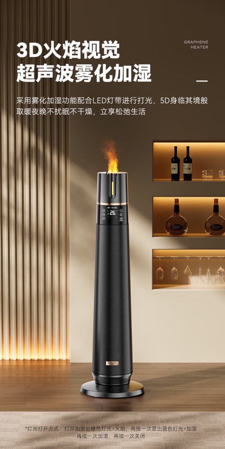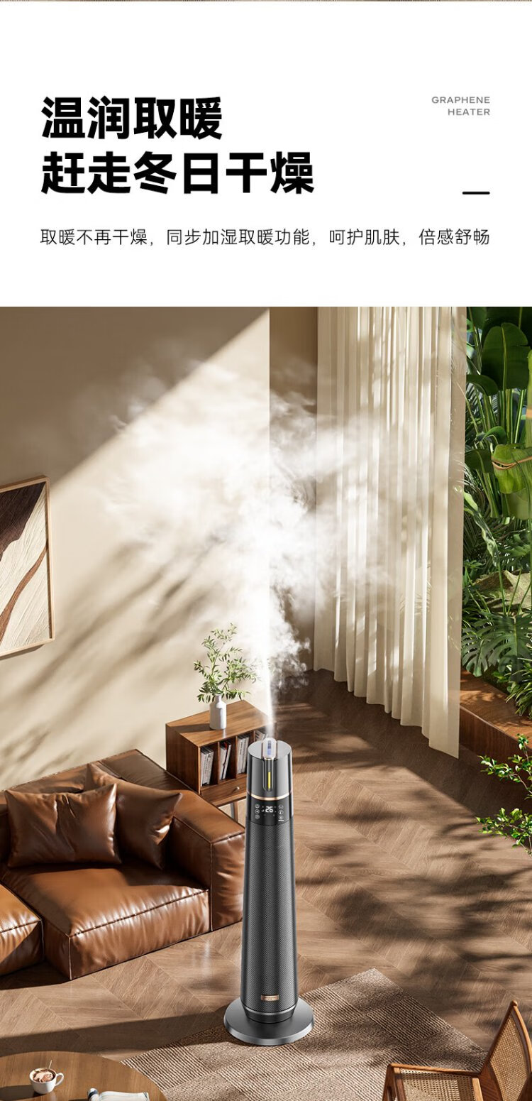 Skyworth 2025 upgraded heightening and humidification model heater graphene large area home office heating energy-saving fast heating electric heater hot air fan A888 black