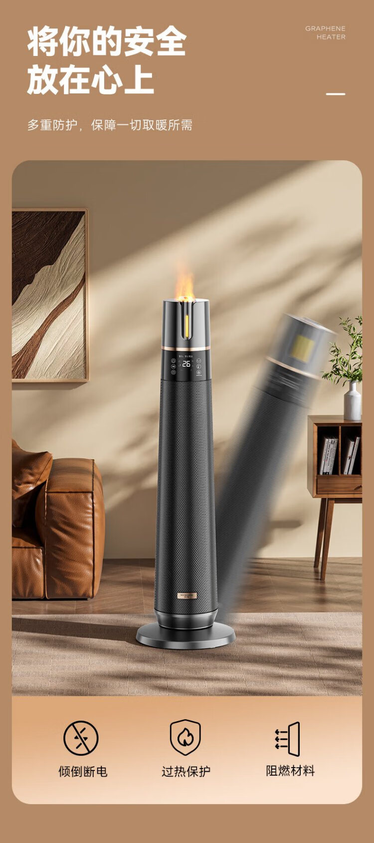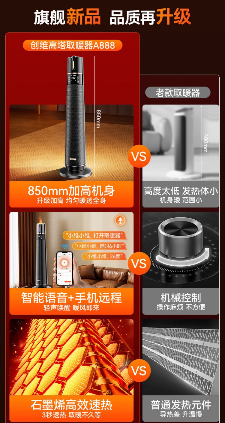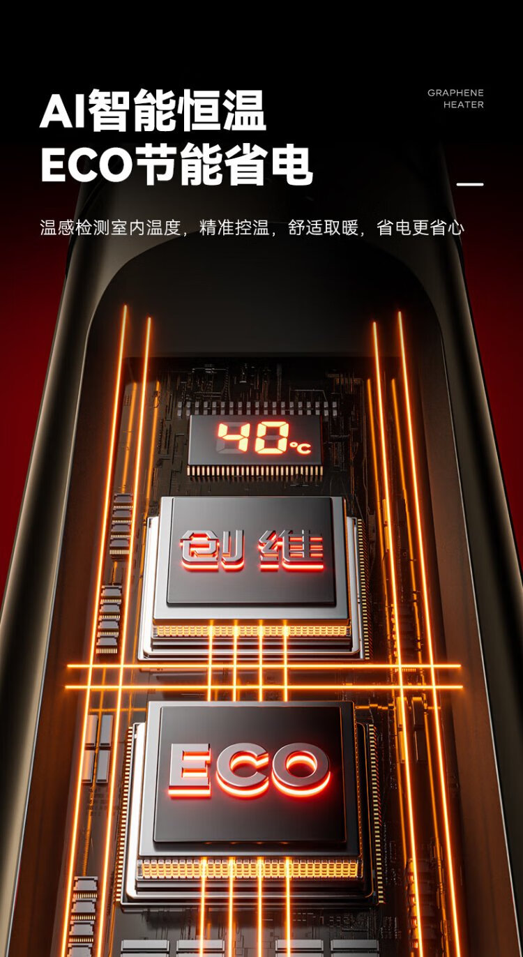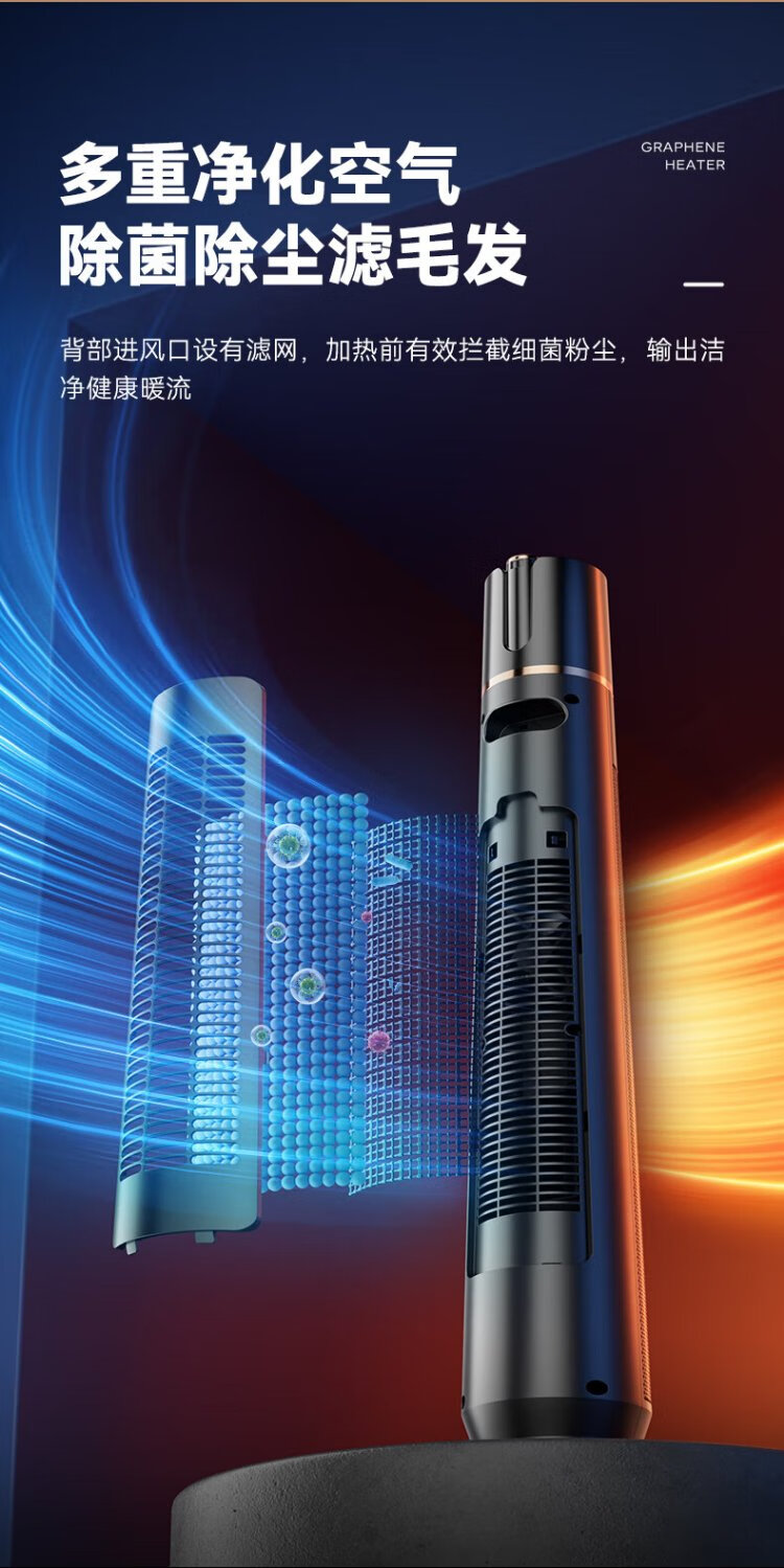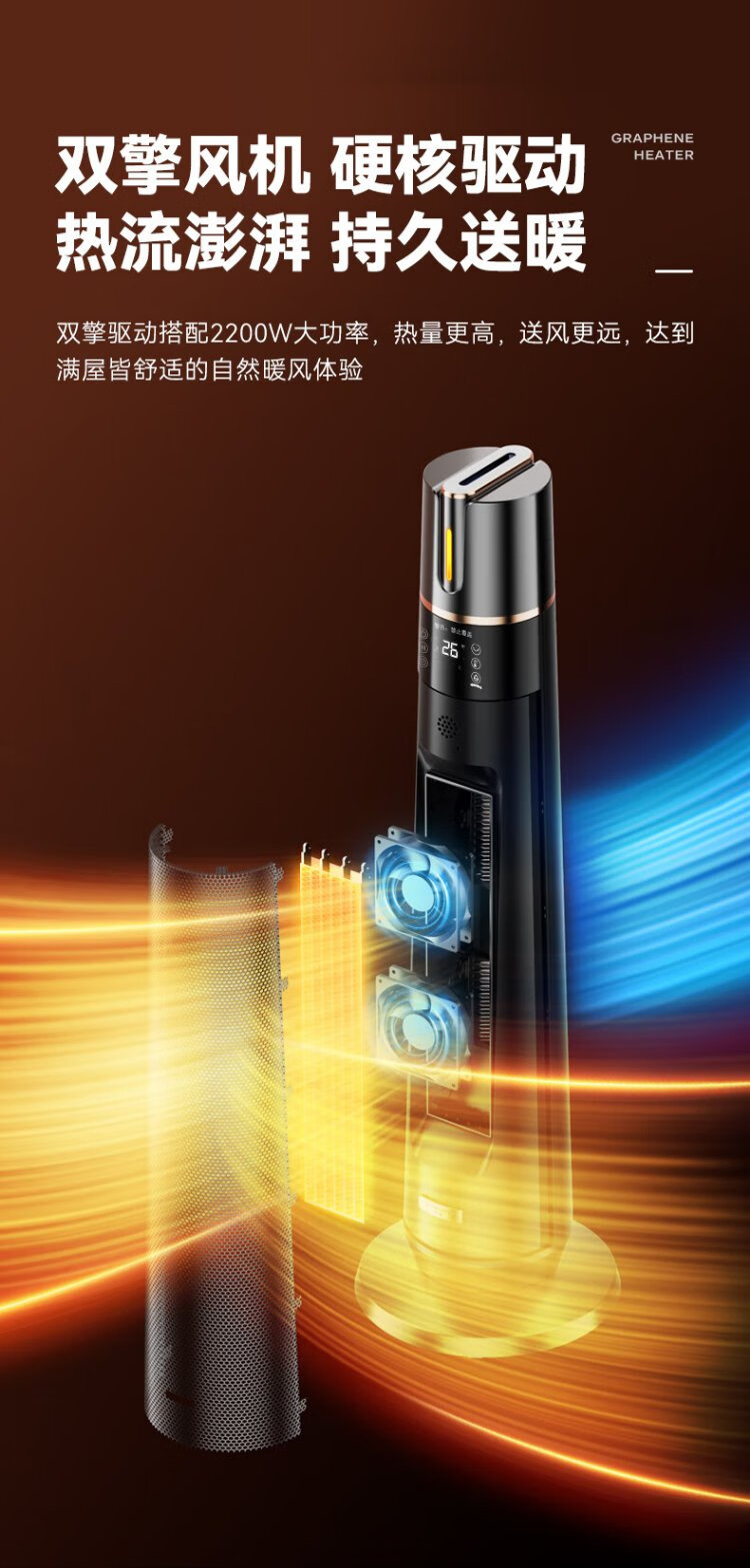 Skyworth 2025 upgraded heightening and humidification model heater graphene large area home office heating energy-saving fast heating electric heater hot air fan A888 black