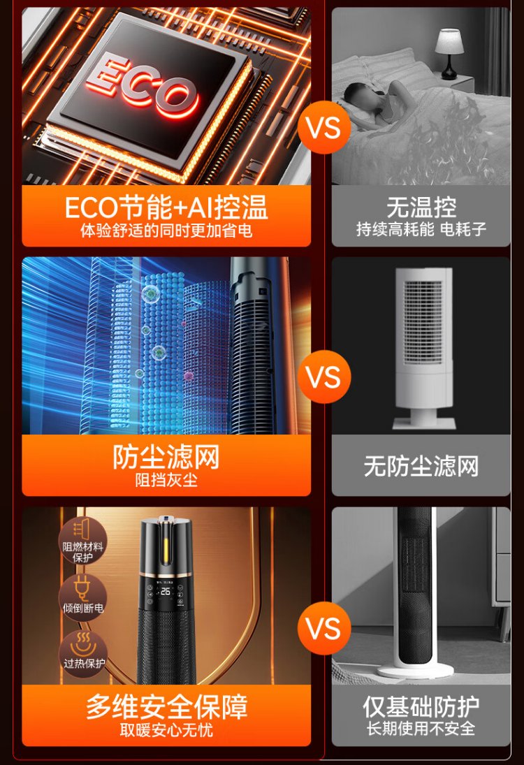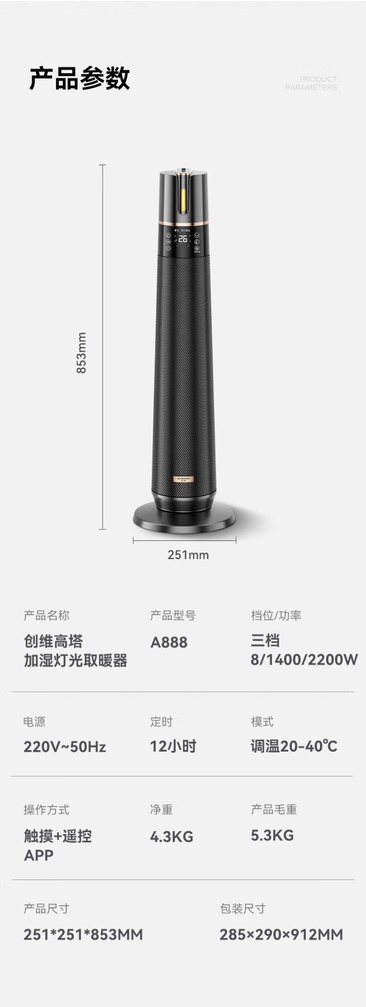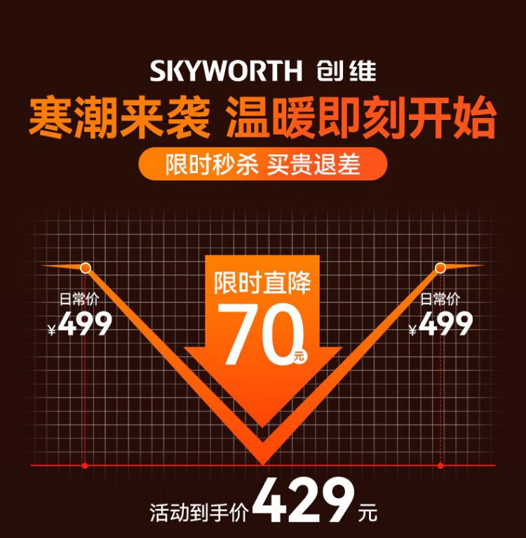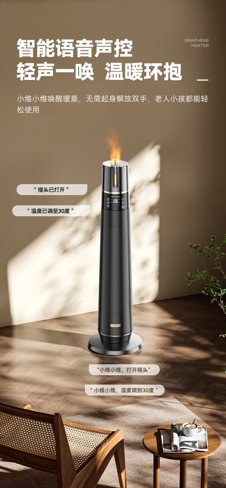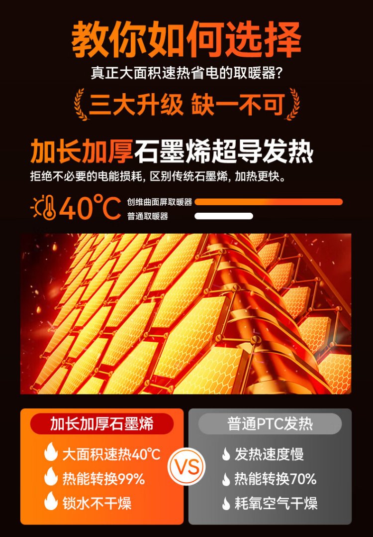 Skyworth 2025 upgraded heightening and humidification model heater graphene large area home office heating energy-saving fast heating electric heater hot air fan A888 black