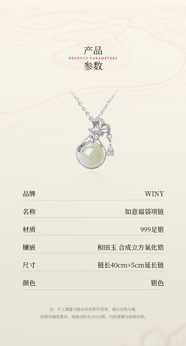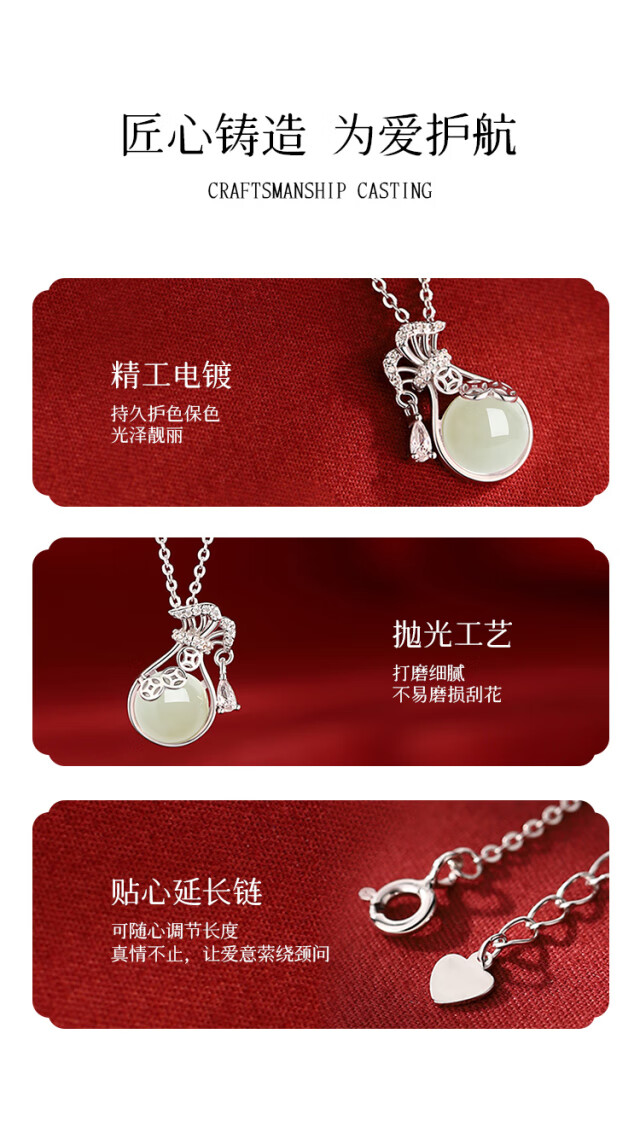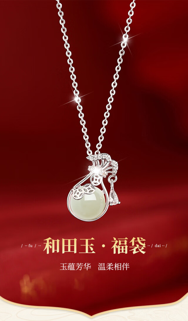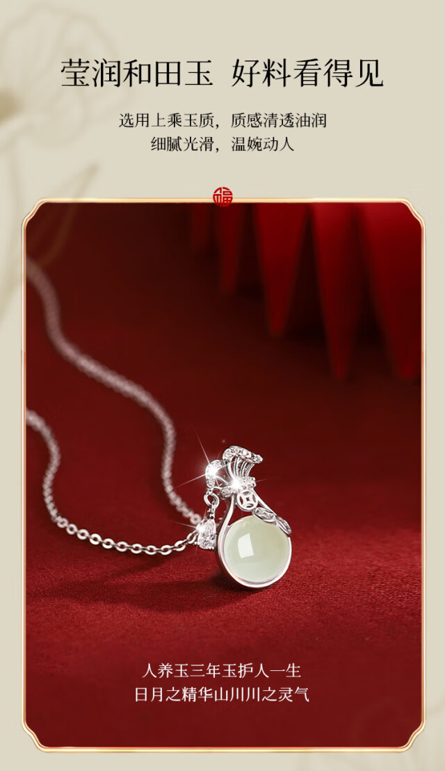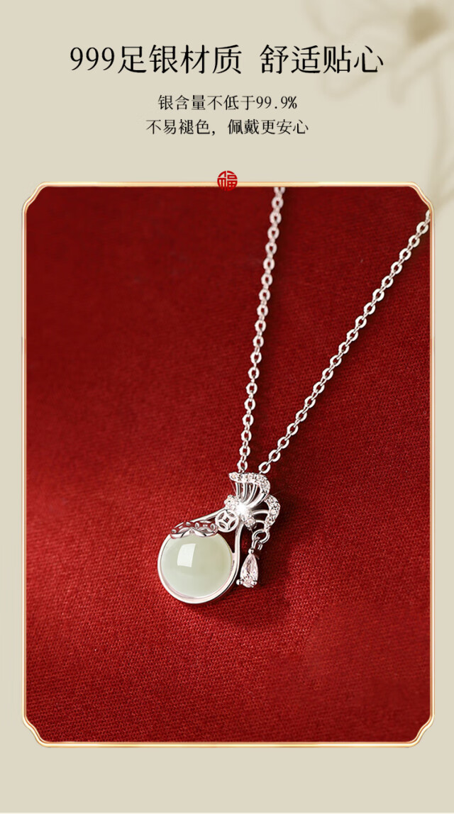 The only (Winy) Hetian Jade Silver Necklace Women's Pendant Birthday Gift Women's Valentine's Day Silver Jewelry for Girlfriend and Wife