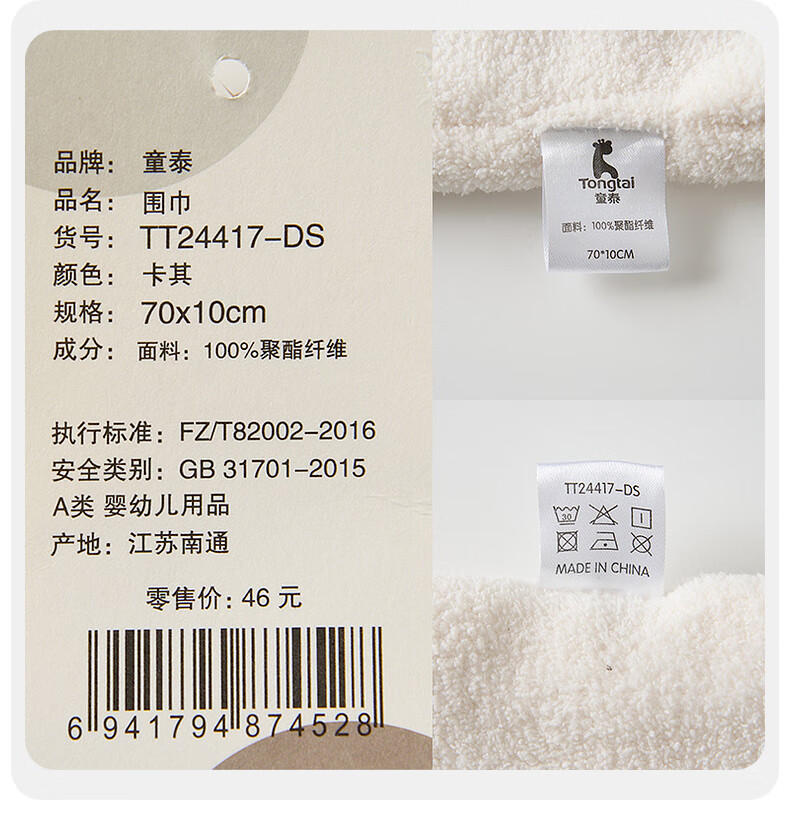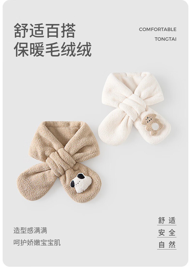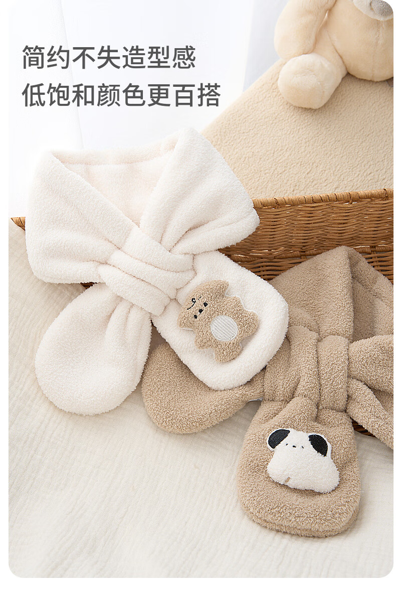 Tongtai (TONGTAI) baby scarf autumn and winter children's neck scarf for going out windproof and warm cute plush neck sleeve khaki 70x10cm