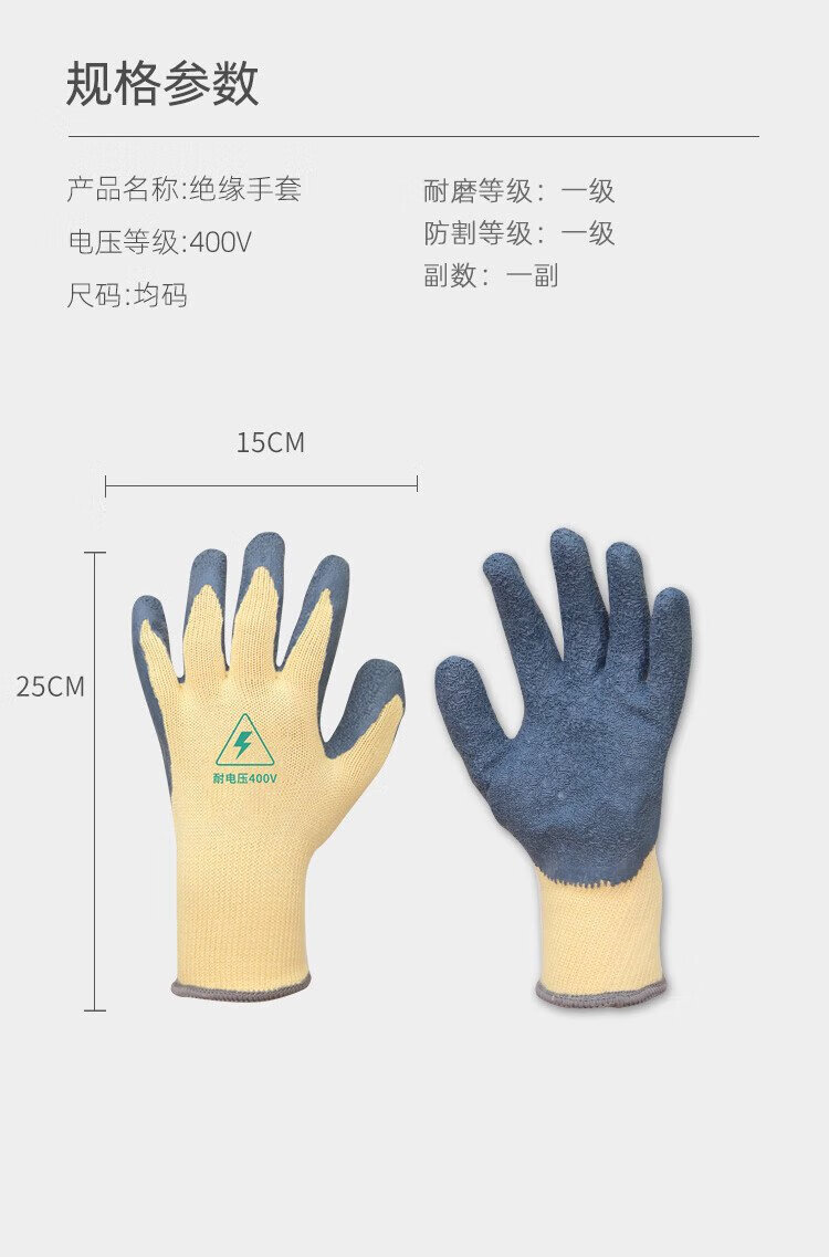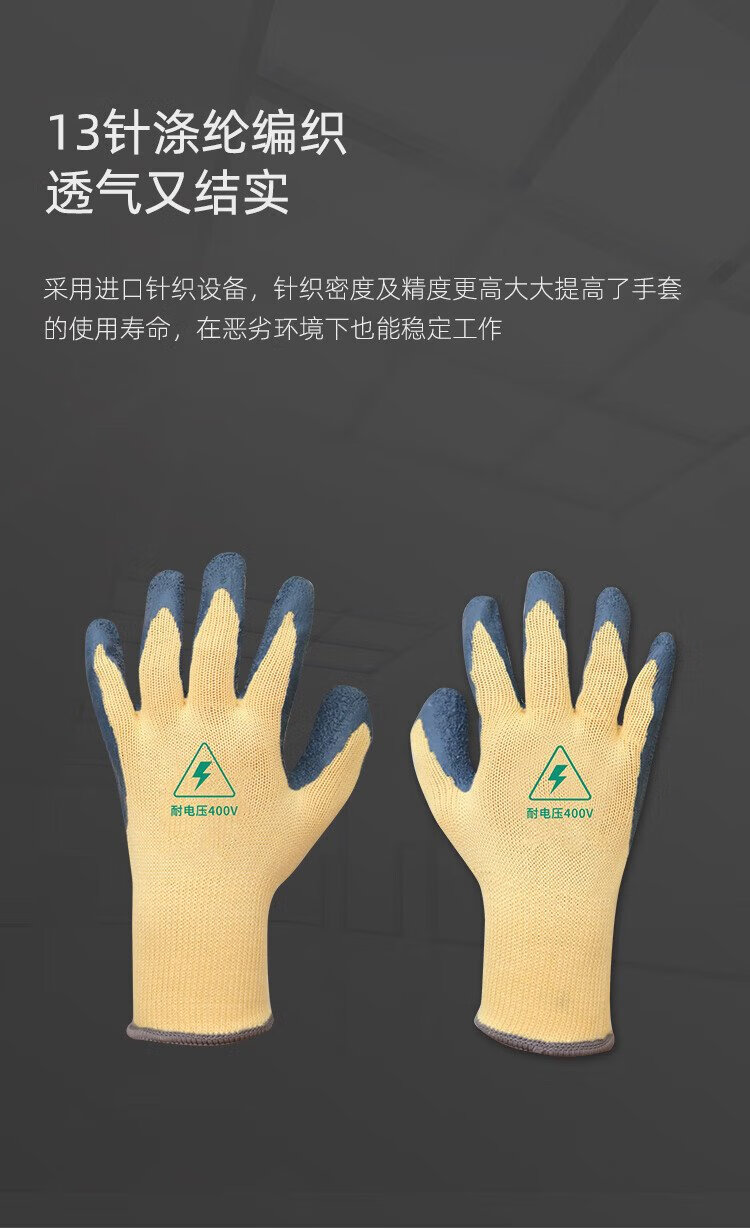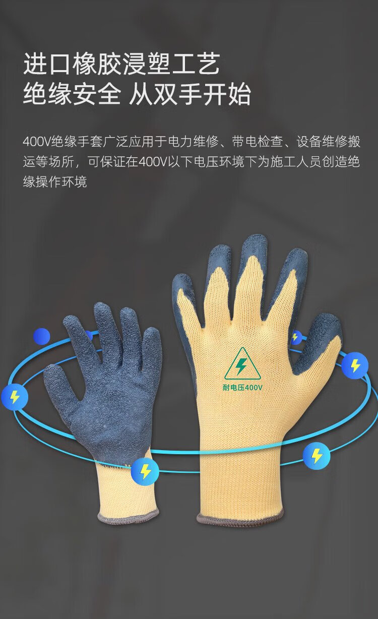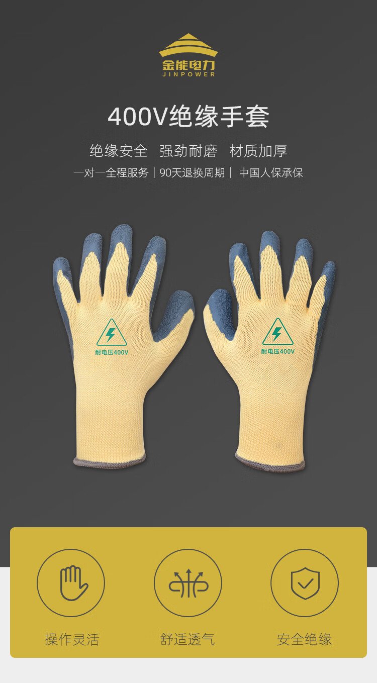 金能电力 绝缘手套低压电工专用400V超薄灵活防电防滑耐磨橡胶220v防护手套