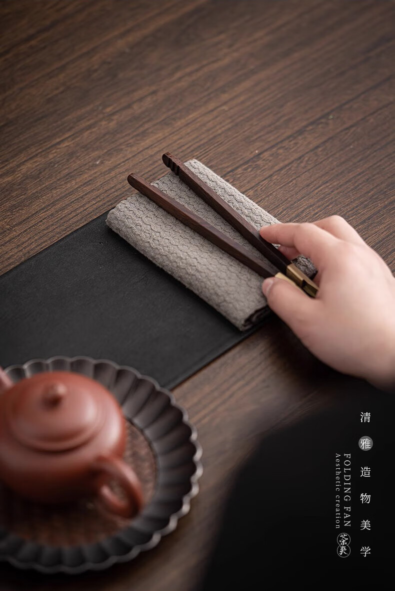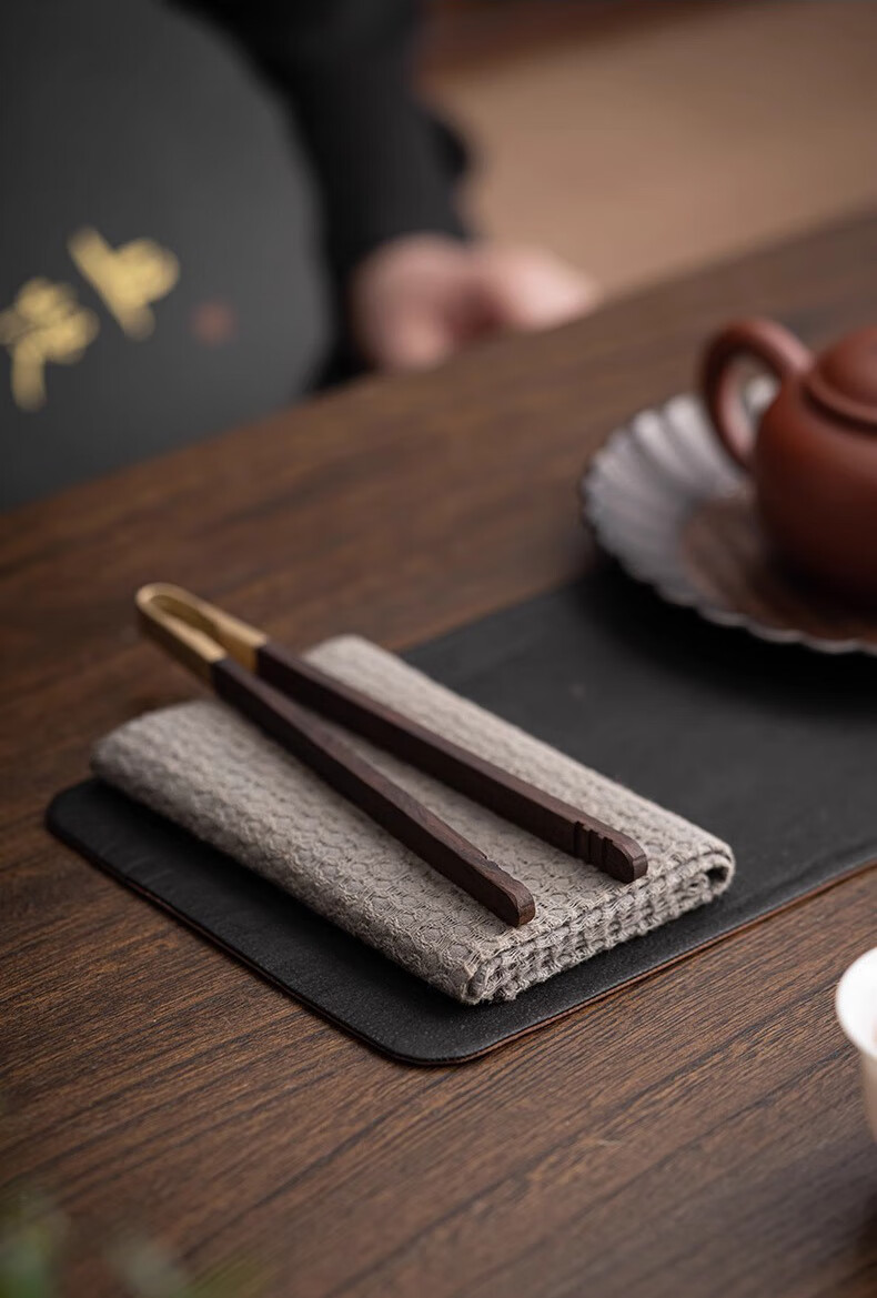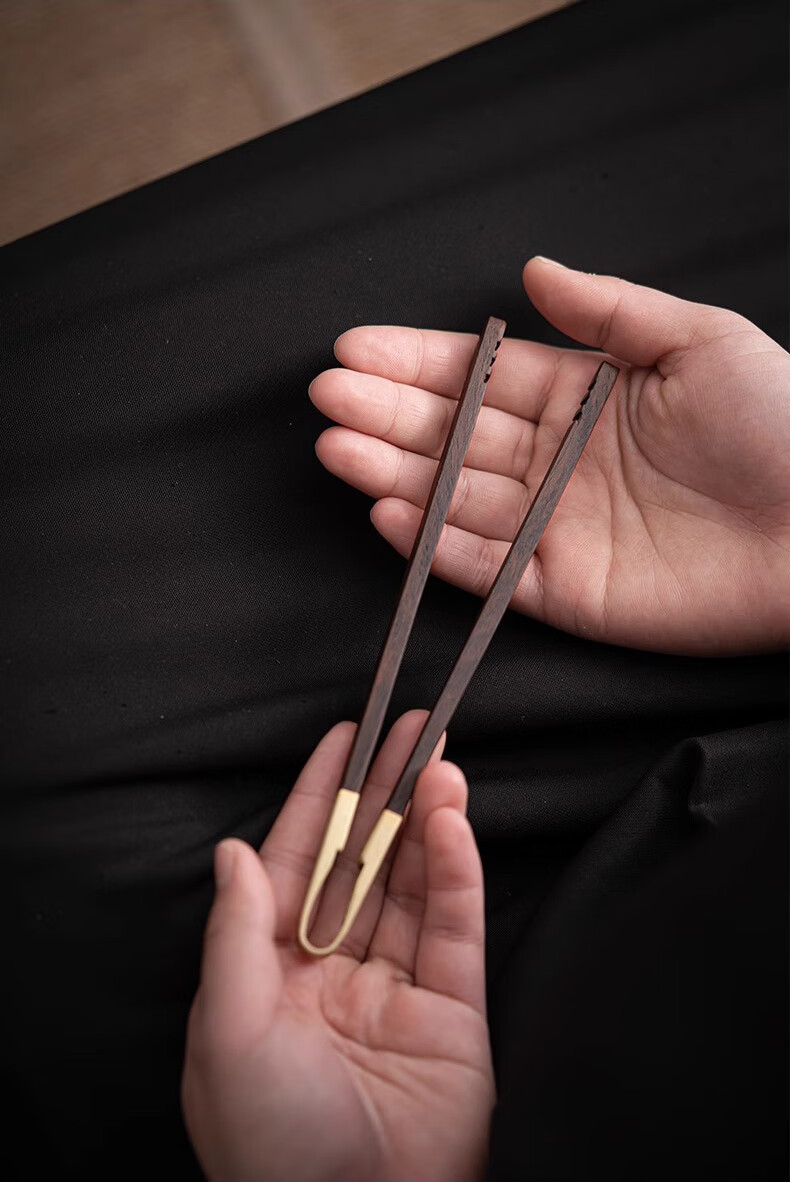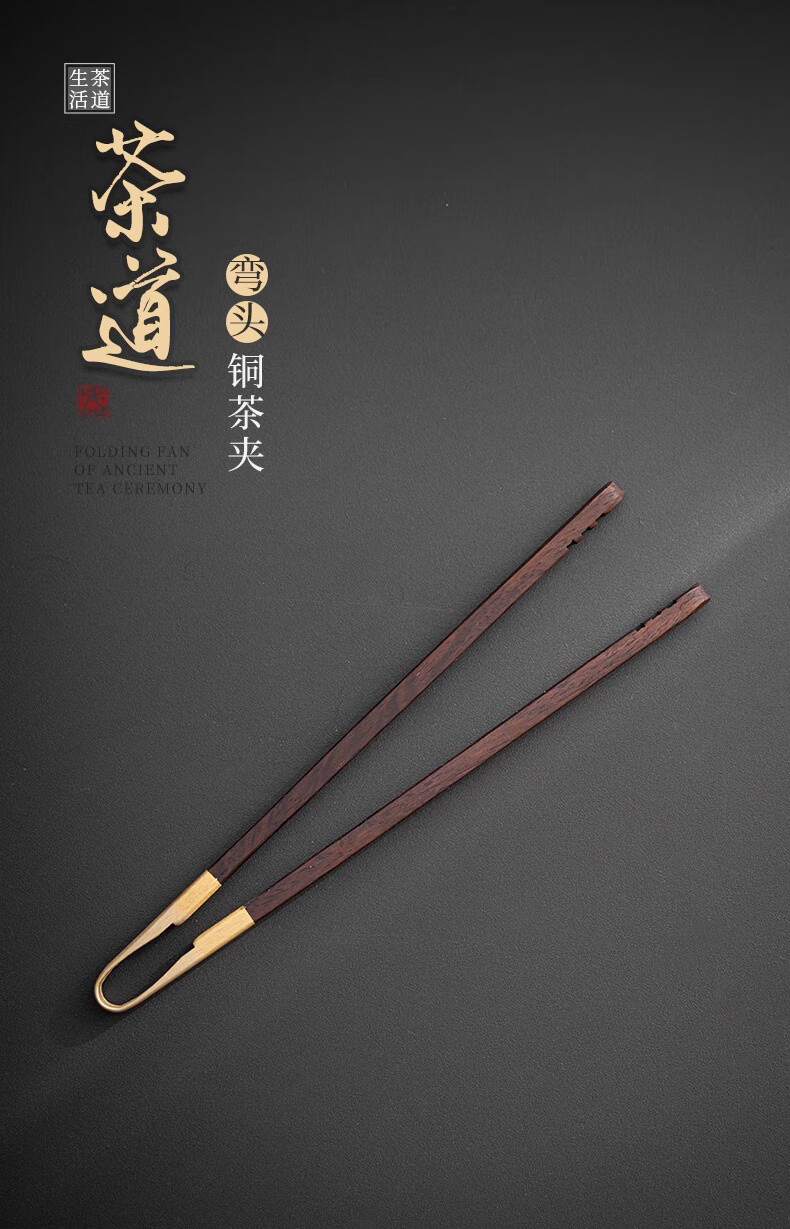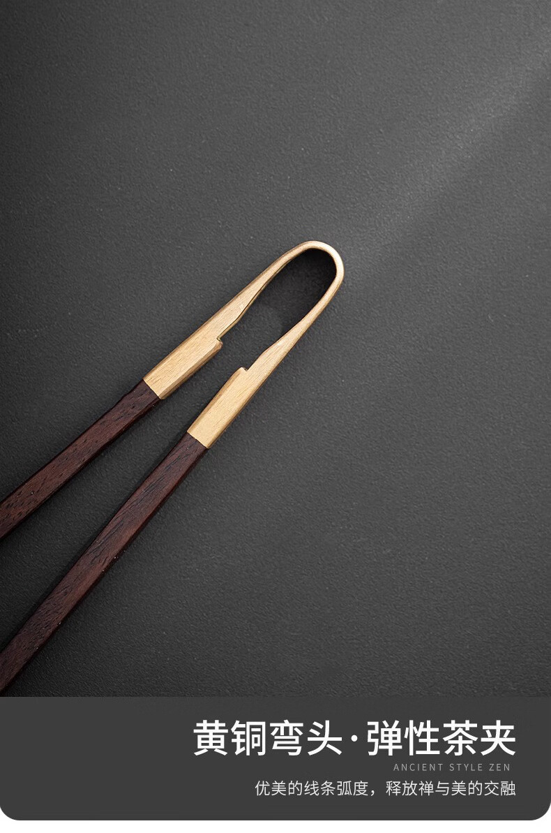 YIJUKE copper wood tea clip ebony tea leaf clip Kung Fu tea set accessories household tea cup clip tweezers cup washing tool