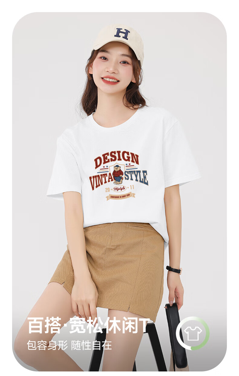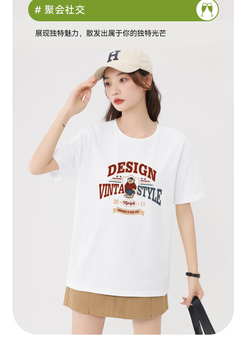 MJ STYLE pure cotton short-sleeved T-shirt for men and women 2026 summer loose casual versatile American retro style hot girl half-sleeved top